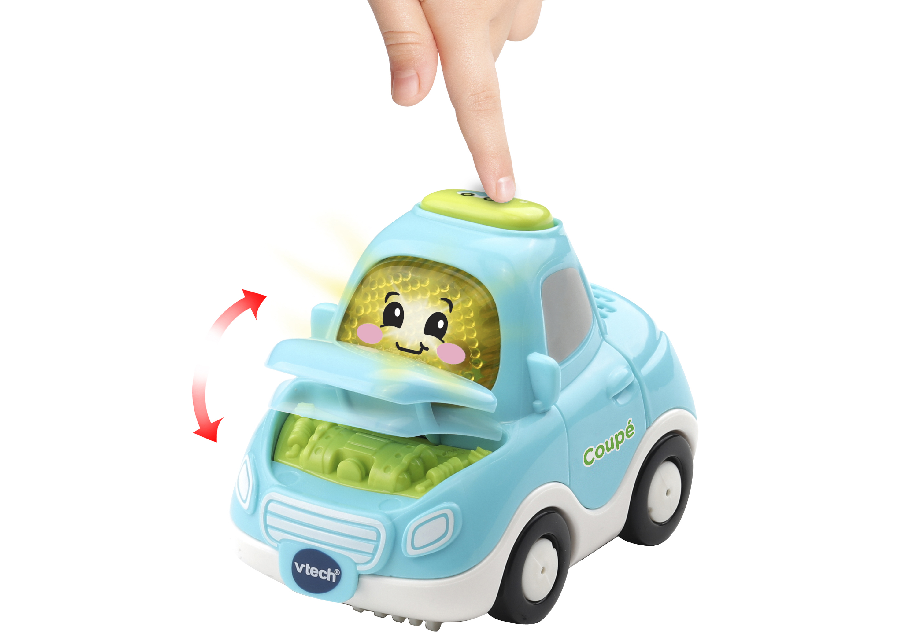 Vtech 80-514104 Tut Tut Baby Flitzer - Coupé Ich bin ein cooles Coup#! Spricht fröhliche Sätze und macht lustige Geräusche Spielt Melodien und Lieder Eine leuchtende Taste zum Drücken Reagiert auf Bewegung der Räder Reagiert auf die magischen Sensoren der Tut ...