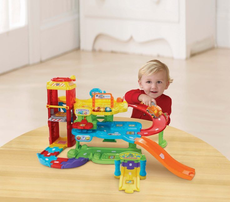 Vtech 80-180004 Tut Tut Baby Flitzer-Parkgarage Waschen, Tanken, Parken - alles unter einem Dach! • Tut Tut Baby Flitzer Parkgarage inkl. Abschleppwagen und vielen Elementen zum Spielen und Entdecken auf 3 Etagen • 3 bunte Klaviertasten benennen Farben • Rutsc...