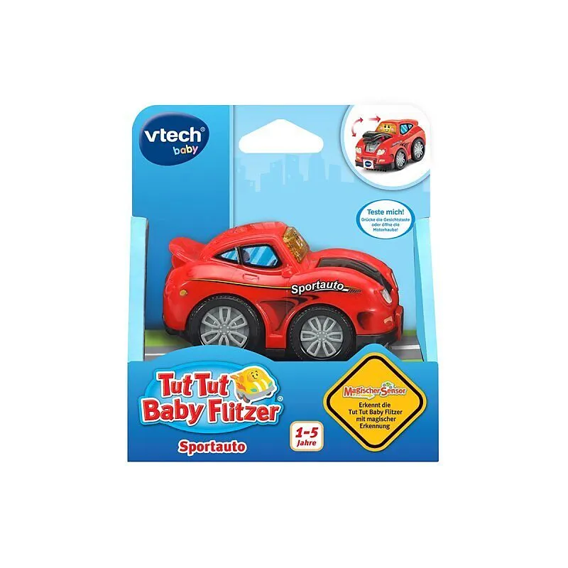 Tut Tut Baby Flitzer - Sportauto Hallo! Ich bin ein schnelles Sportauto! Tut Tut Baby Flitzer mit aufklappbarer Motorhaube. Beim Drücken der leuchtenden Gesichtsstaste werden Sätze, Melodien und Geräusche ausgelöst. Spricht fröhliche Sätze, spielt kindgerechte...