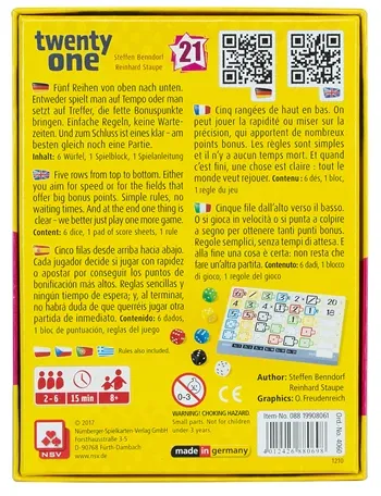 Fünf Reihen. Von oben nach unten. Entweder spielt man auf Tempo und trägt kleine Werte ein. Oder man setzt auf Treffer, denn die bringen fette Bonuspunkte, maximal 21. Einfache Regeln. Keine Wartezeiten. Und zum Schluss ist eines klar am besten gleich noch ein...