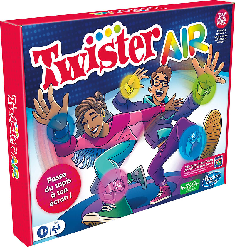 Twister sans tapis, mais avec écran! Les joueurs attachent à leurs mains et à leurs pieds des bracelets qui détectent les mouvements. Les joueurs essaient d'associer leurs poignets et pieds aux points colorés sur l'écran. Avec appli.