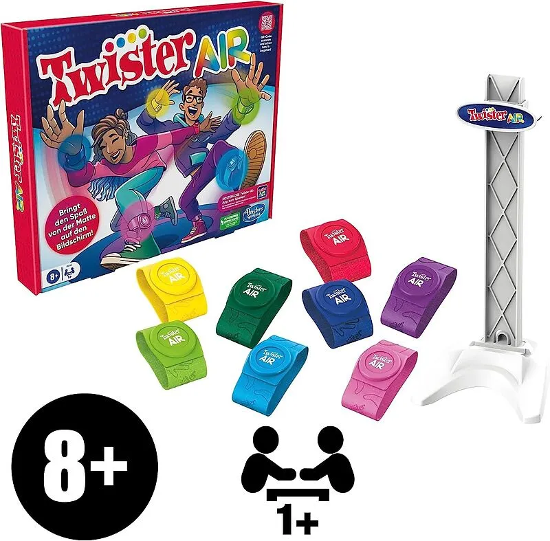TWISTER AIR Keine Matte? Genau! Twister Air bringt den Bewegungsspaß von der Matte auf den Bildschirm! Bei dem Twister App Spiel steigt die Party auf dem Smart Gerät. Das Spiel enthält 8 farbige Twister Air Bänder und 1 Ständer für das Smartphone oder Tablet. ...