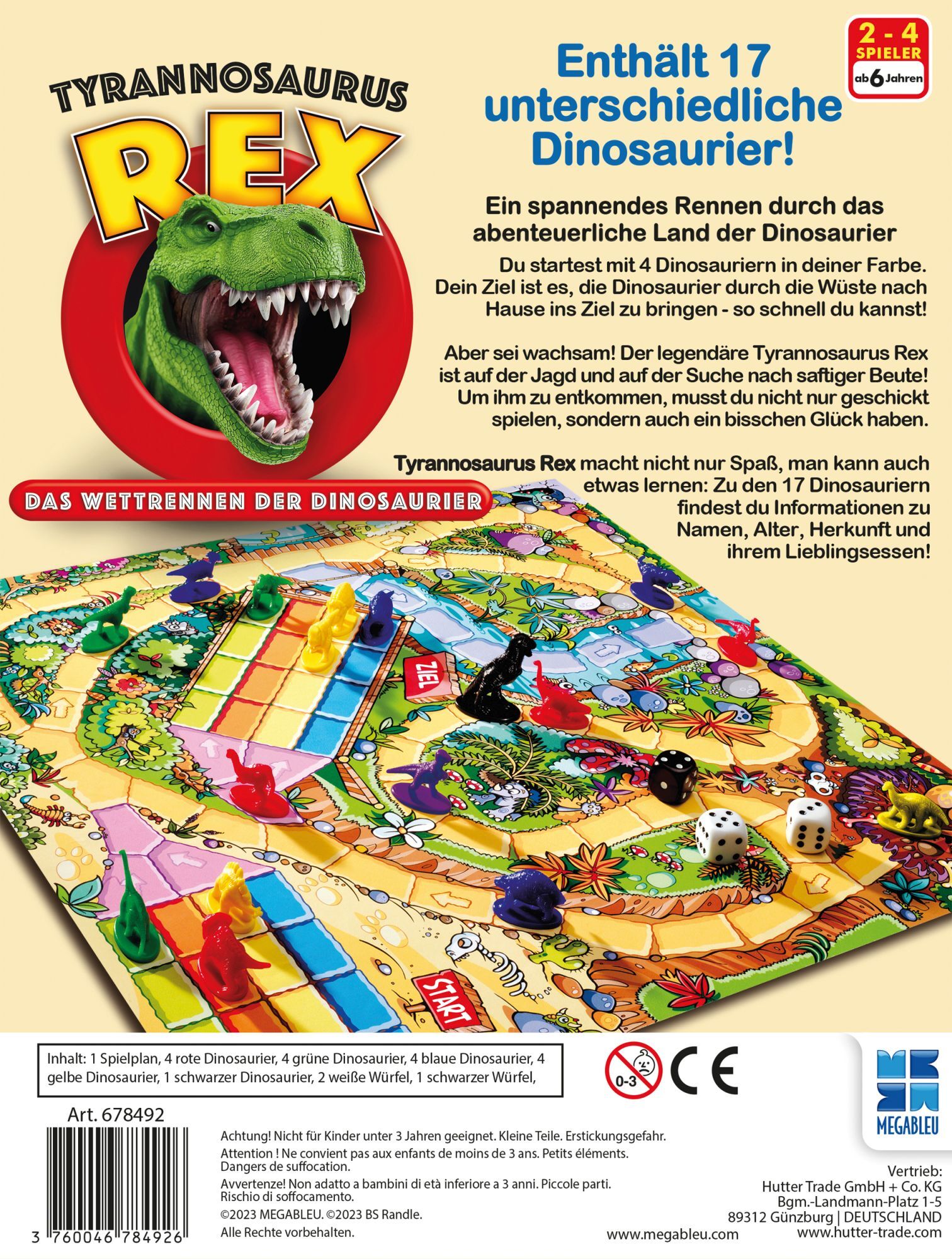 Tyrannosaurus-Rex Die Dinos sind los! Jeder Spieler startet mit 4 Dinosauriern. Das Ziel: Die Dinos durch die Wüste nach Hause bringen und das so schnell wie irgendwie möglich. Denn: Der König aller Dinosaurier, der Tyrannosaurus Rex, ist auf der Jagd und such...