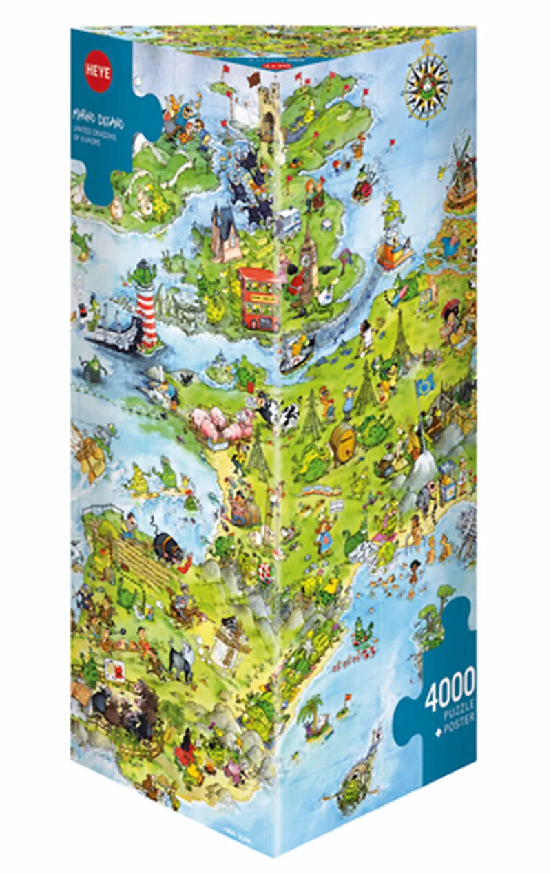 In ganz Europa tummeln sich Marino Deganos grüne Drachen und erzählen dabei einiges über die liebenswerten Eigenheiten der jeweiligen Länder und Menschen. Puzzlegrösse: 1360 x 960 mm Seit 1978 hat die Puzzler-Welt auch drei Ecken. Ein aussergewöhnliches Format...