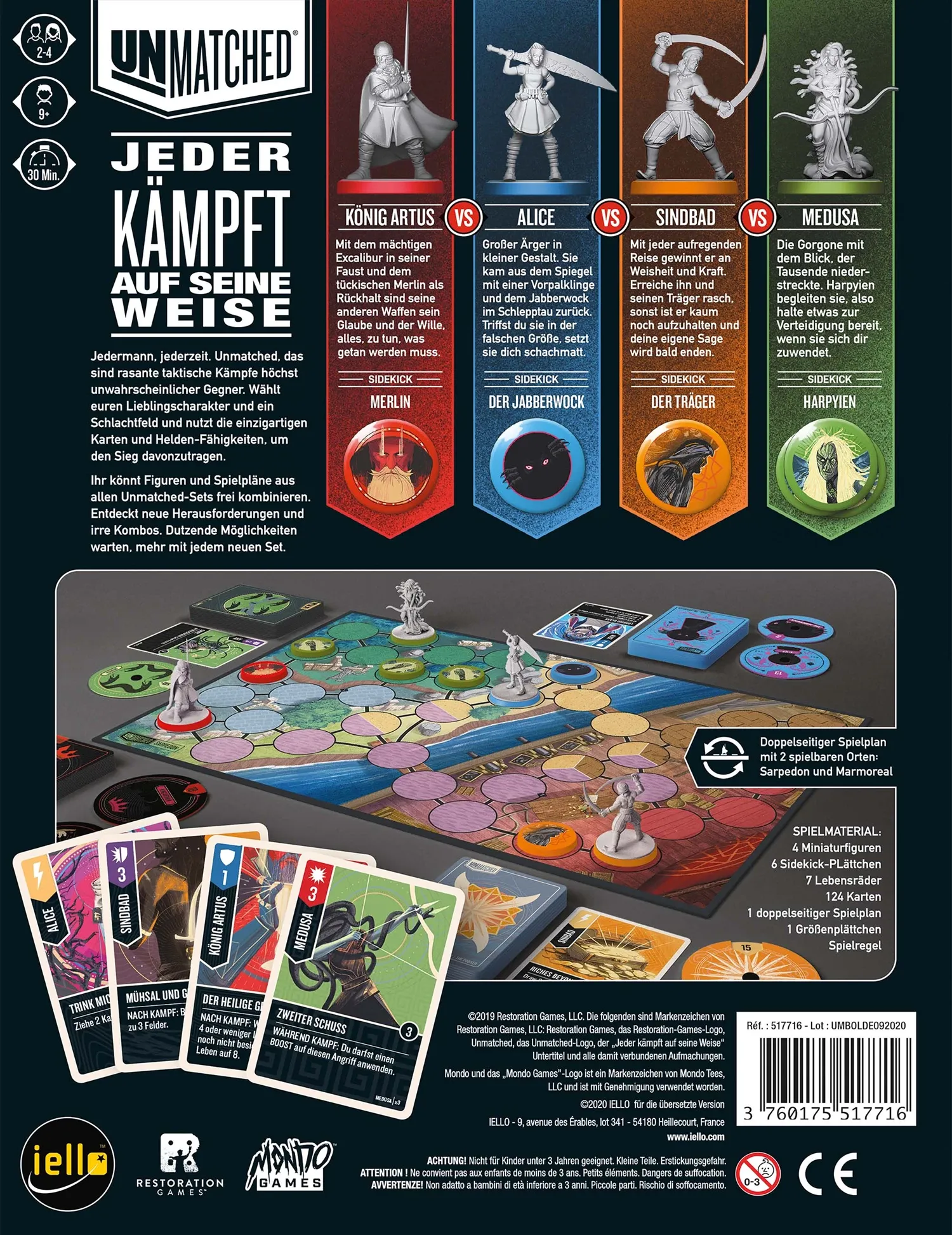 Unmatched, das sind rasante taktische Kämpfe höchst unwahrscheinlicher Gegner. Wählt euren Lieblingscharakter und ein Schlachtfeld und nutzt die einzigartigen Karten und Helden-Fähigkeiten, um den Sieg davon zu tragen. Ihr könnt Figuren und Spielpläne aus alle...