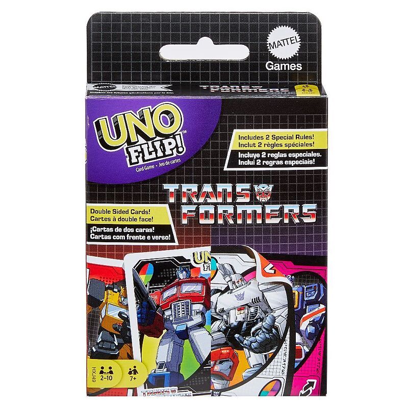 Das UNO Flip Kartenspiel verleiht dem klassischen Spiel einen spannenden Twist. Auf den Karten sind aus Transformers bekannte Autobots und Decepticons zu sehen. Sobald eine Flip-Karte gespielt wird, wird der Kartenstapel von der Autobot- auf die Decepticon-Sei...