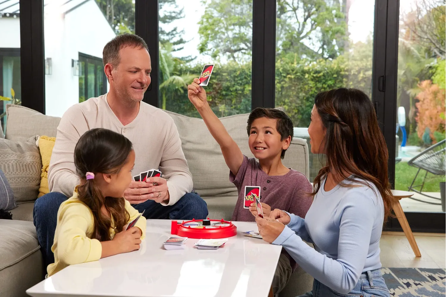 UNO Spin UNO Spin verleiht dem klassischen UNO einen neuen Dreh, der Spielspaß für alle bietet! Die Spieler legen der Reihe nach UNO-Karten nach Farbe, Zahl oder Aktion ab, um ihre Karten loszuwerden. Wird eine Dreh-Karte gespielt, muss der Spieler das Rad dre...97 Kunden haben diesen Artikel kürzlich gekauft.