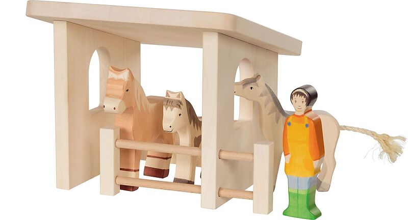 Wenn sich die Lieblingstiere Ihres Kindes einmal ausruhen müssen, ist dieser Unterstand aus Holz der perfekte Ort dafür. Er fügt sich nahtlos in das Spiel der Kinder ein und erweitert es um eine Spielmöglichkeit. So können sie all ihre Schäfchen ins Trockene b...