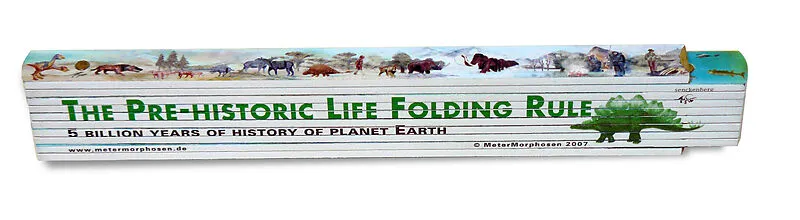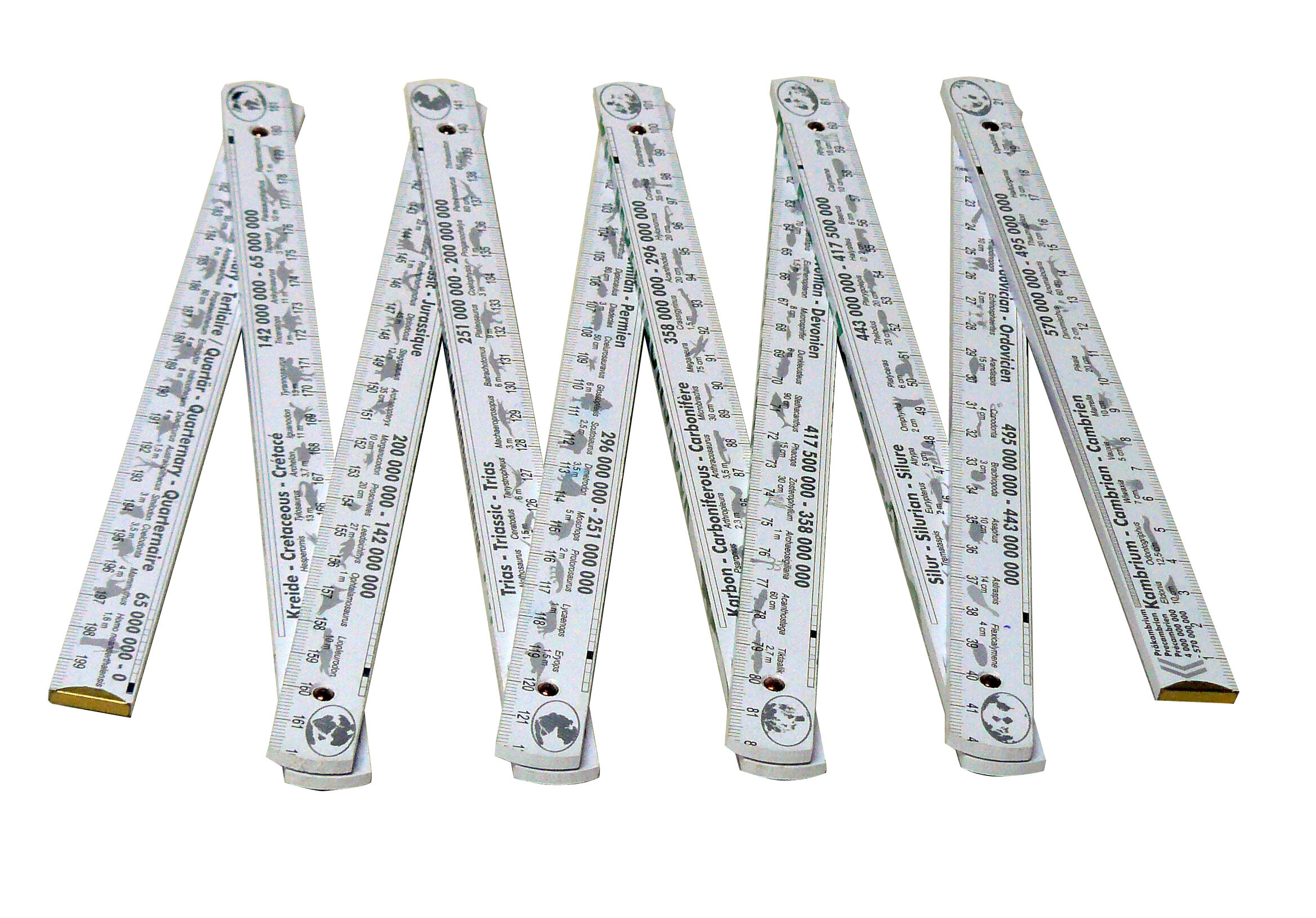 Urgeschichte am laufenden Meter. DER ERDZEITZOLLSTOCK: Wie lange dauerte das Erdaltertum? Welche Epoche ging dem Jura voran? Wann jagte der Segelsaurier Dimetrodon? Und vor wieviel Millionen Jahren begaben sich die ersten Wirbeltiere an Land und in die Lüfte? ...