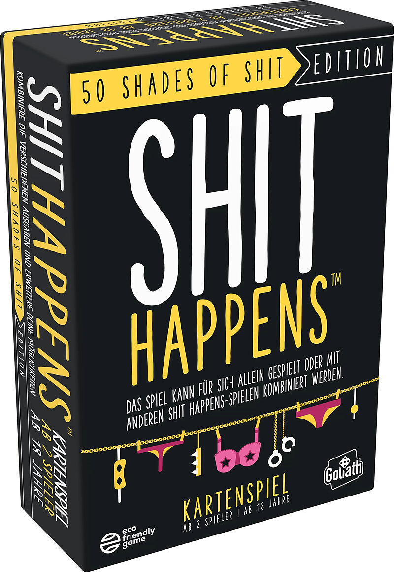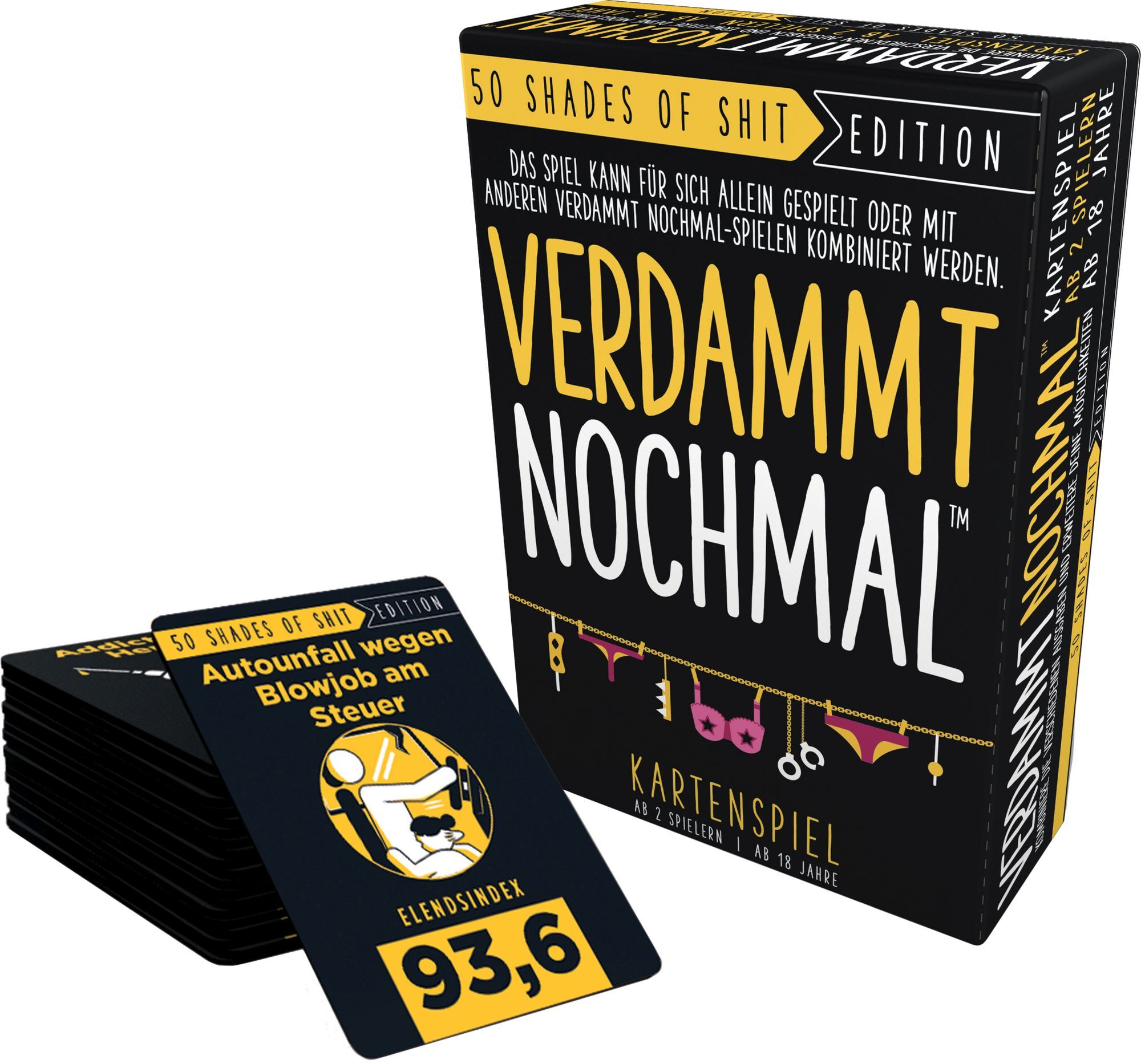Ergänzung zum Spiel Verdammt Nochmal (Shit Happens) oder Einzelspiel. Bei Verdammt Nochmal 50 Shades of Shit sind noch viele weitere beschissene Situationen beschrieben und Du entscheidest, welche der Situationen schlimmer ist.