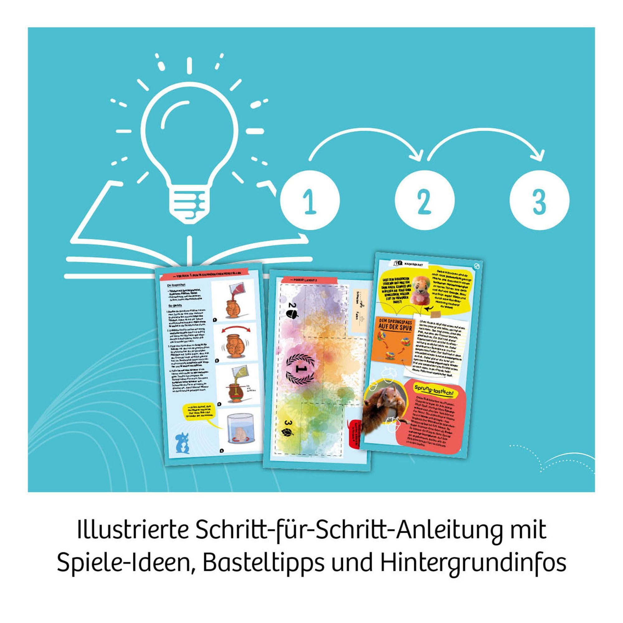 Lass Eichhörnchen durch dein Zimmer hüpfen - Hüpf Eichhörnchen, hüpf! Keck, frech und lustig hüpfende bunte Eichhörnchen als Flummi selbst kreativ gestalten für viele spaßige Spiele. - Granulat in vier Farben wird in eine der beiden Eichhörnchen-Gussformen geg...