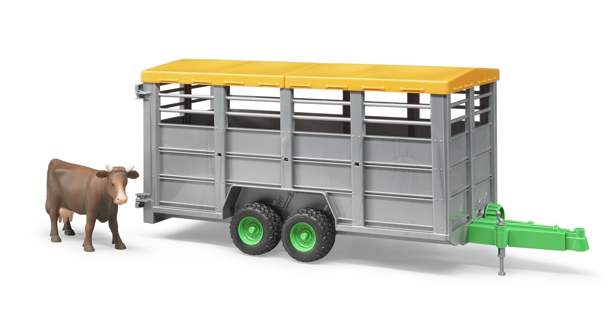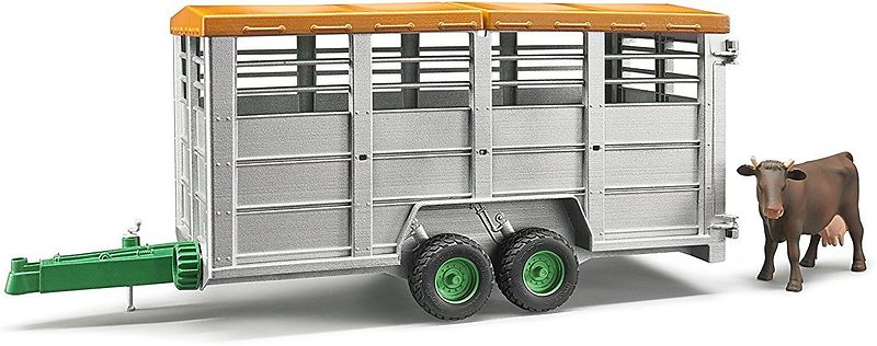 Bruder 02227 Viehtransportanhänger inklusive 1 Kuh ''Im Frühjahr werden viele Nutztiere auf die Weiden gebracht, wo sie den Sommer verbringen. Dazu benutzen Landwirte spezielle Viehanhänger für den schonenden Transport der Tiere. Einen solchen, vielseitigen Vi...