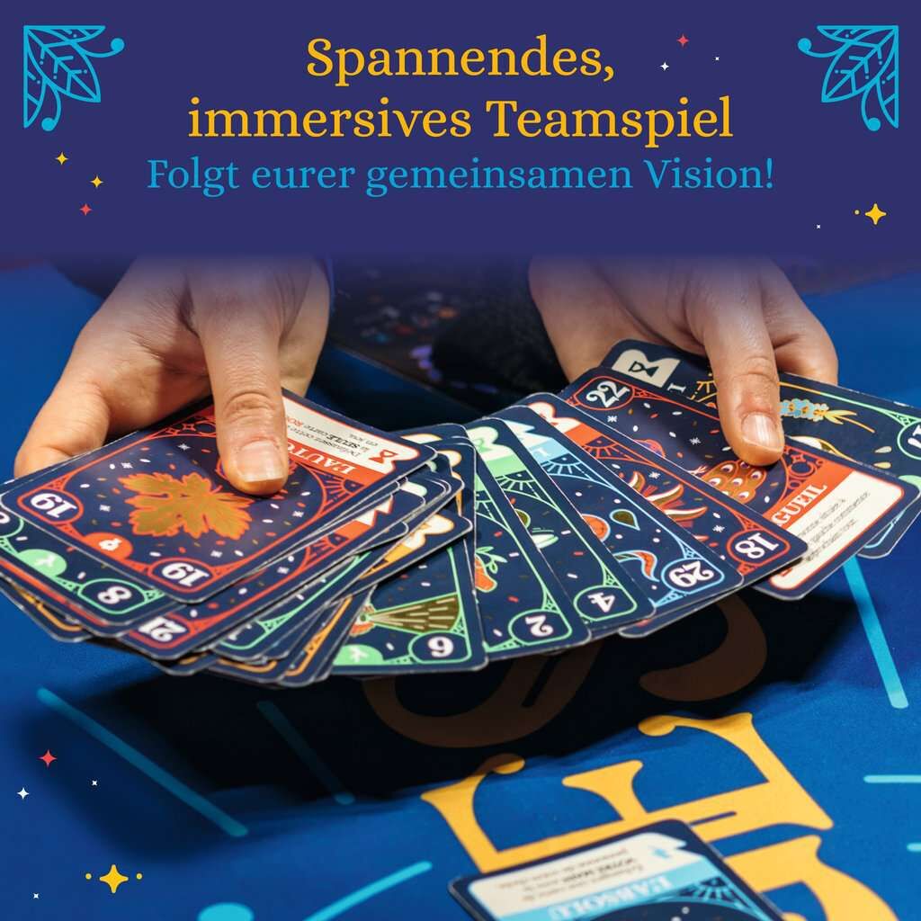 Vision - Kartenspiel In diesem Kartenspiel liegt die Zukunft eures Teams liegt in euren Händen. Folgt eurer gemeinsamen Vision und spielt eure Karten geschickt aus. Wer nur noch eine Karte hat, gewinnt den Durchgang für das eigene Team. Doch wer darf Karten ab...