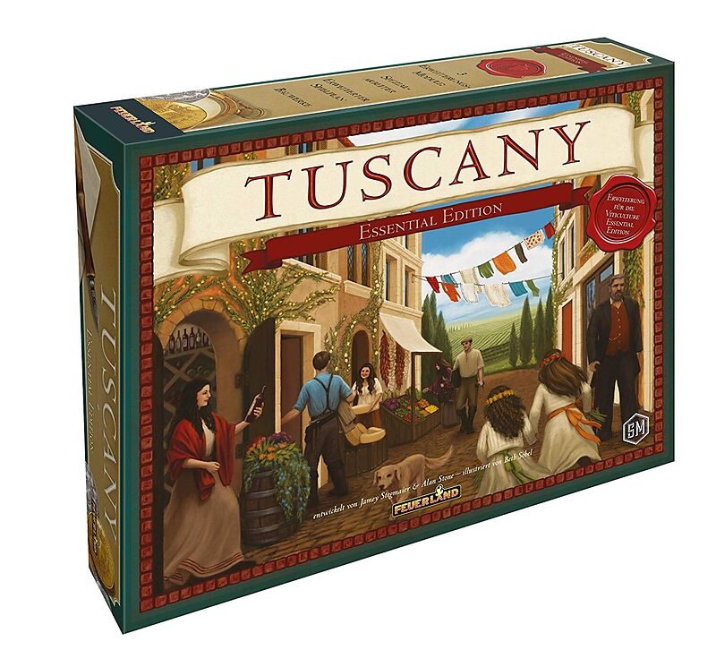 Tuscany ist eine Erweiterung zu Viticulture und enthält 3 neue Module, die in beliebiger Kombination verwendet werden können. Die neuen Module sind der erweiterte Spielplan, die Spezialarbeiter und die Bauwerkskarten. Zum Spielen wird die Vitivulture Essential...