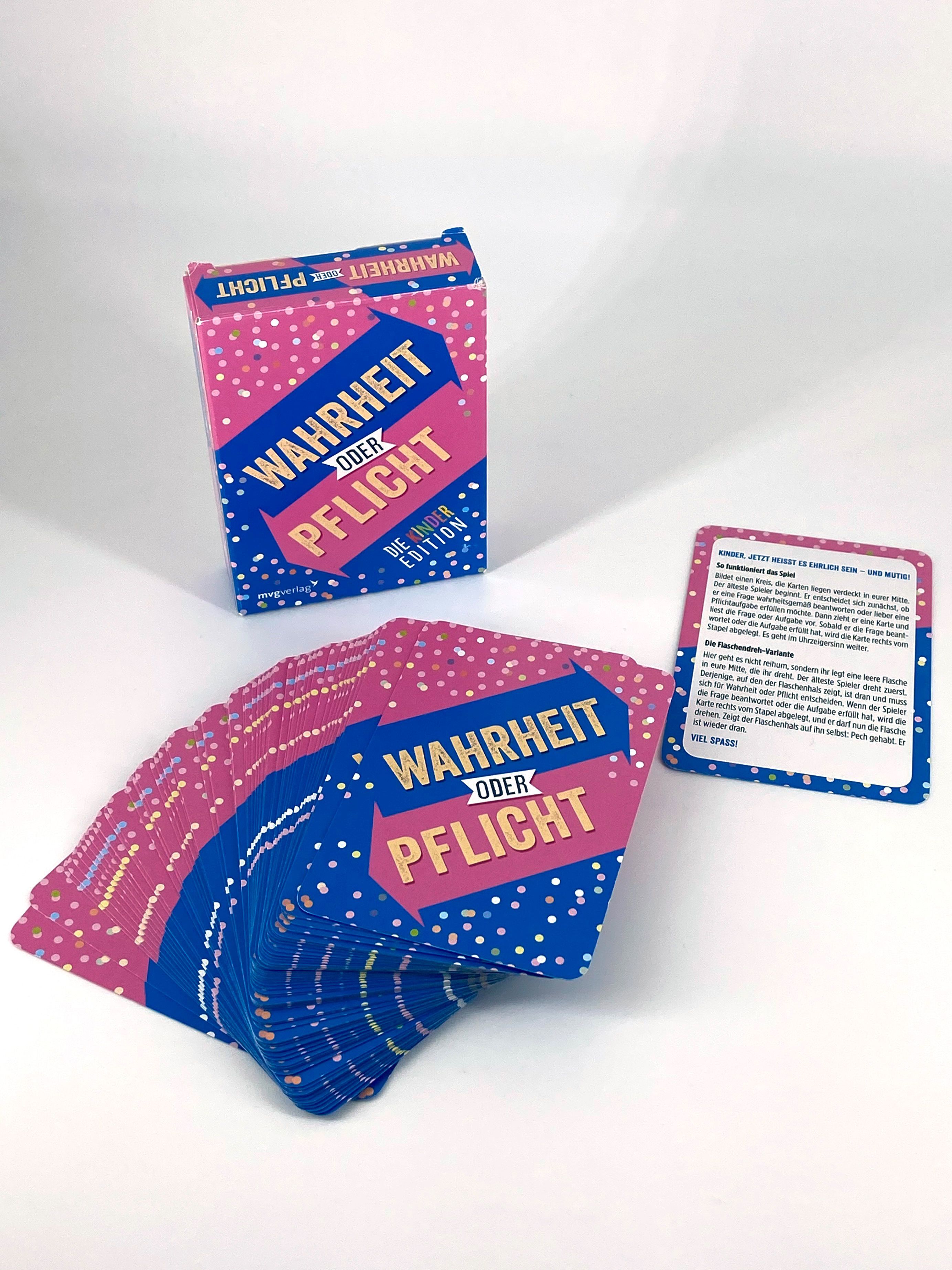 Wahrheit oder Pflicht - Die Kinderedition Endlich gibt es den Spieleklassiker Wahrheit oder Pflicht als neue Variante extra für Kinder und Jugendliche! Diese Version des beliebten Partyspiels versammelt Aufgaben und Fragen, die perfekt abgestimmt sind auf den ...