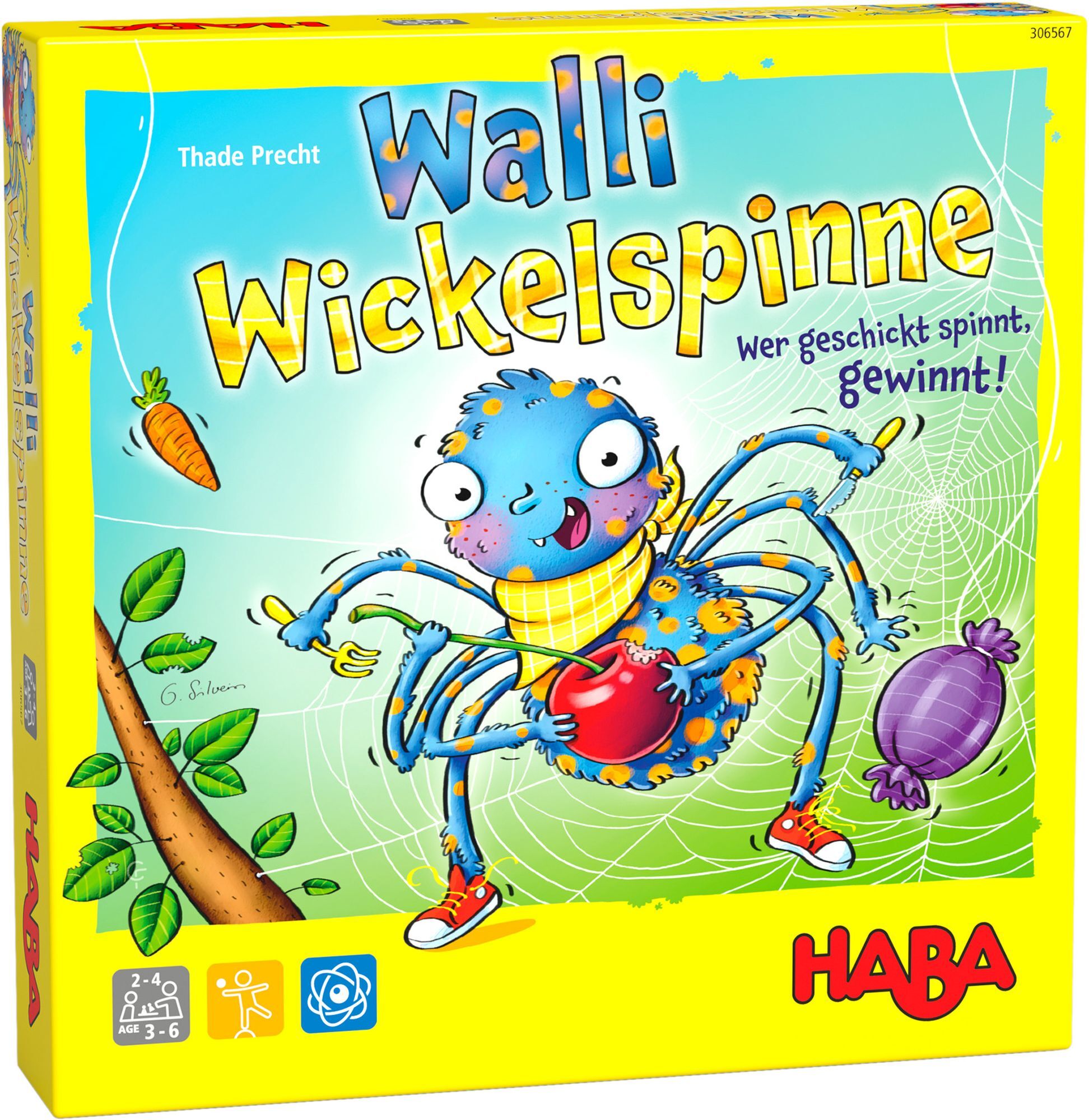 Witziges Motorikspiel von HABA: Walli Wickelspinne - robustes Spielmaterial aus stabiler Pappe und Holz - Mitbringspiel ab 3 Jahren mit Symbolwürfel und einfachen Regeln - für 2 bis 4 Fadenkünstler, Spieldauer ca. 10 Minuten - das Geschicklichkeitsspiel förder...