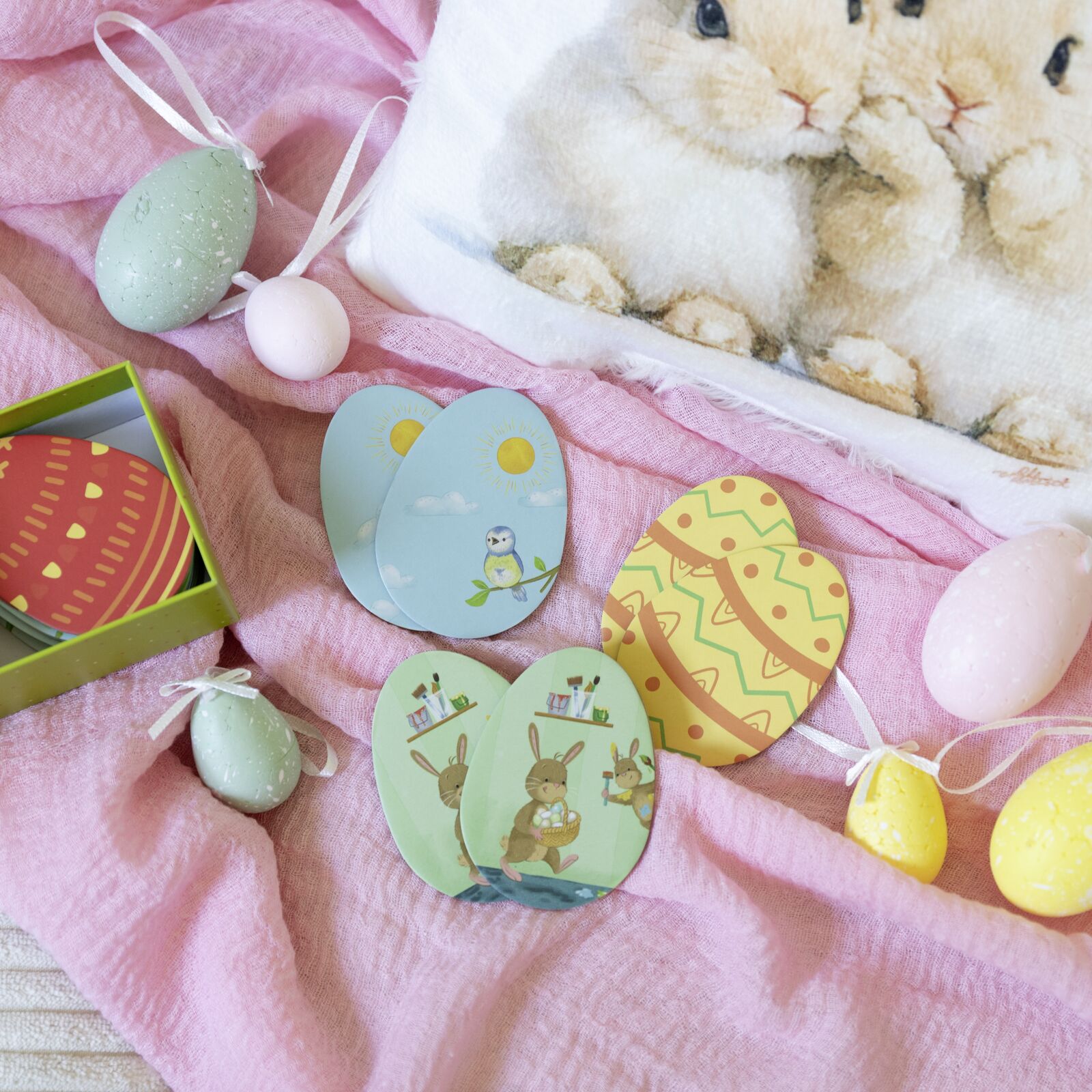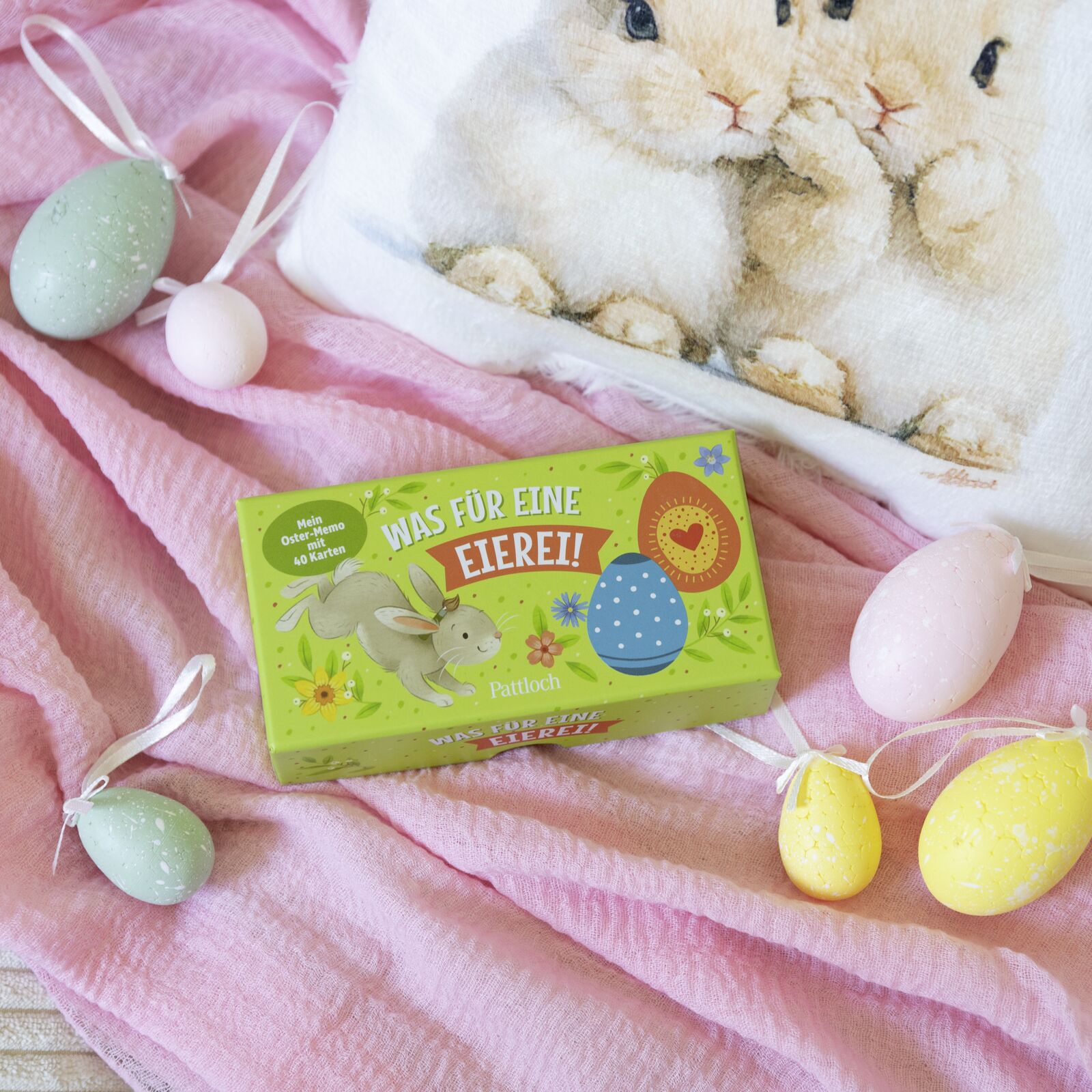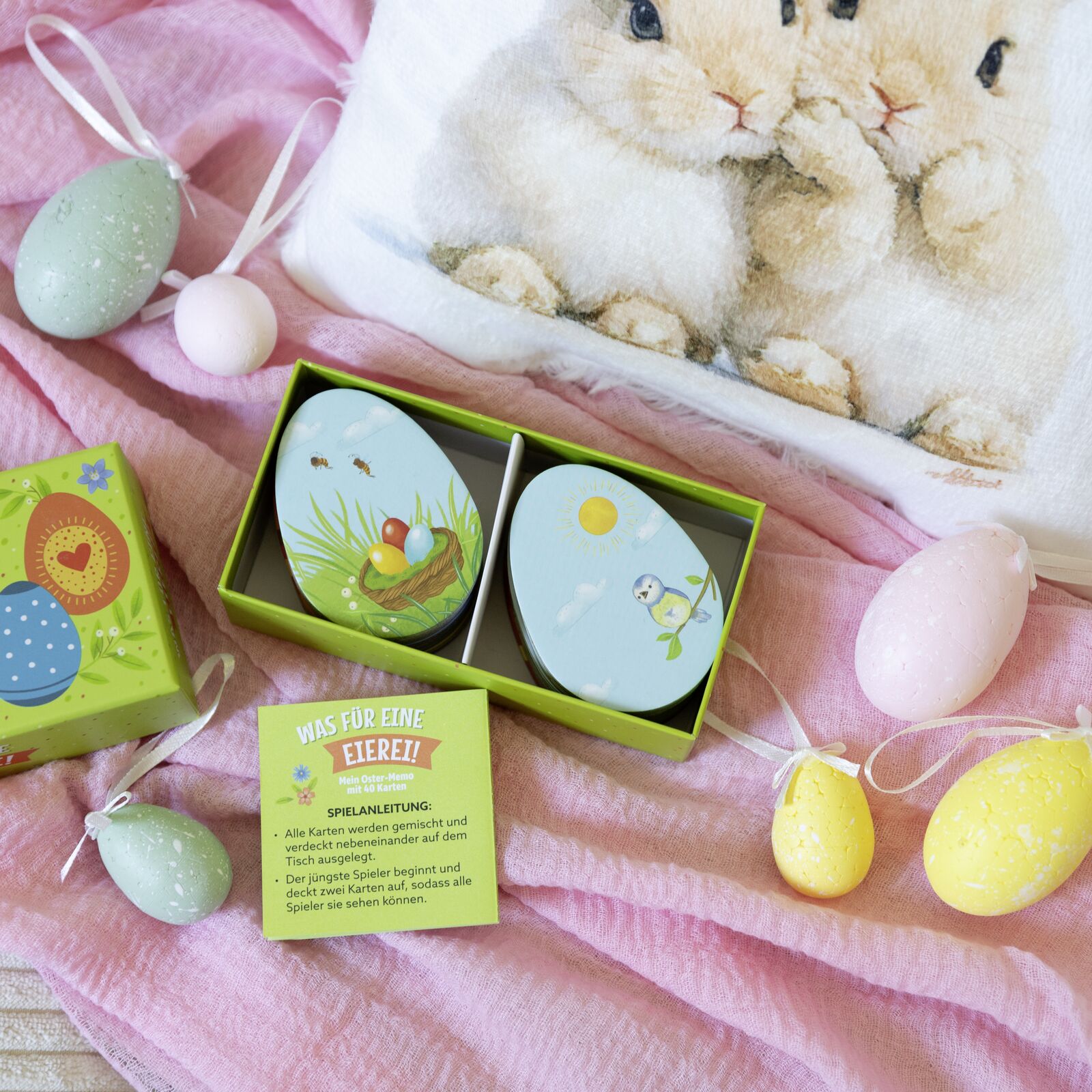 Lustiges Memo-Spiel zu Ostern - mit Karten in Eier-Form Eier-Suche mal anders: So viele bunte Ostereier - aber welche gehören zusammen? Die 40 gestanzten Memo-Karten in der Form von Ostereiern sind mit niedlichen Tieren und kunterbunten Mustern illustriert. D...