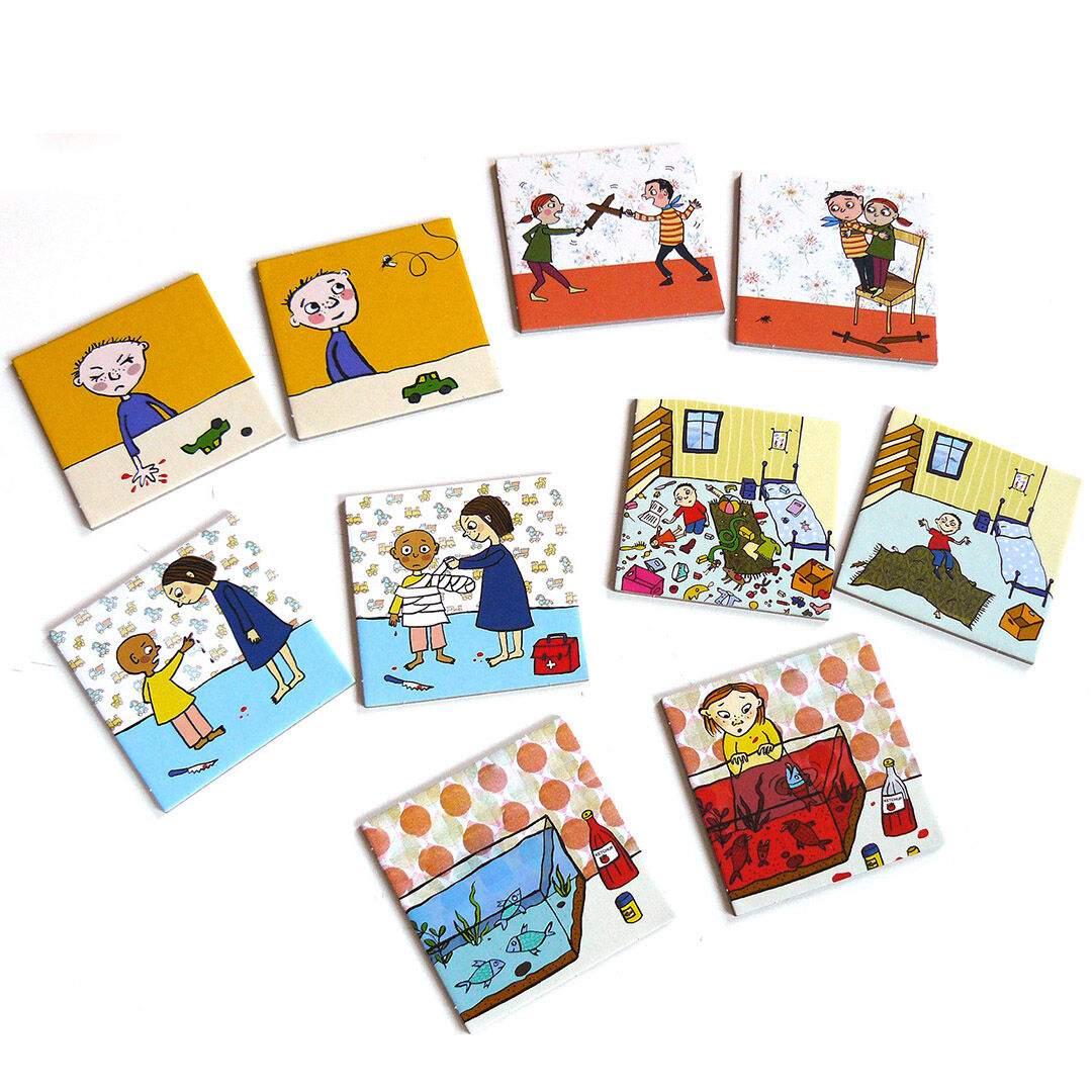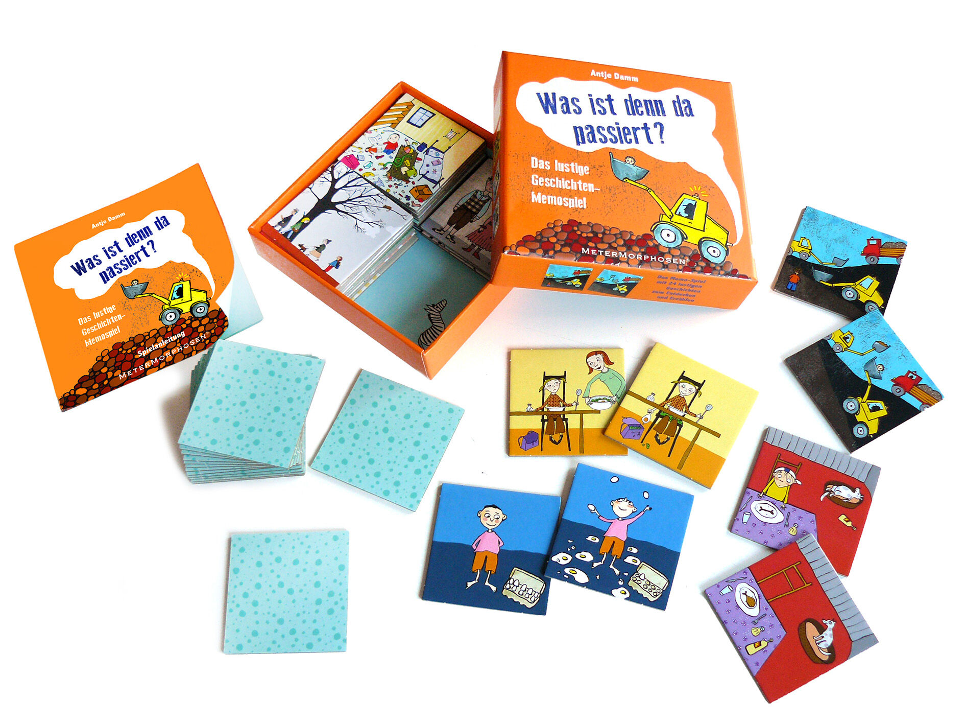 WAS IST DENN DA PASSIERT? Antje Damm regt in ihrem neuen Familien-Memospiel zum Kombinieren und Erzählen an. Was ist passiert, wenn Spaghetti auf dem Kopf und eine Katze im Staubsauger gelandet sind? Es gilt nicht nur, die ungleichen Paare zu finden, sondern a...