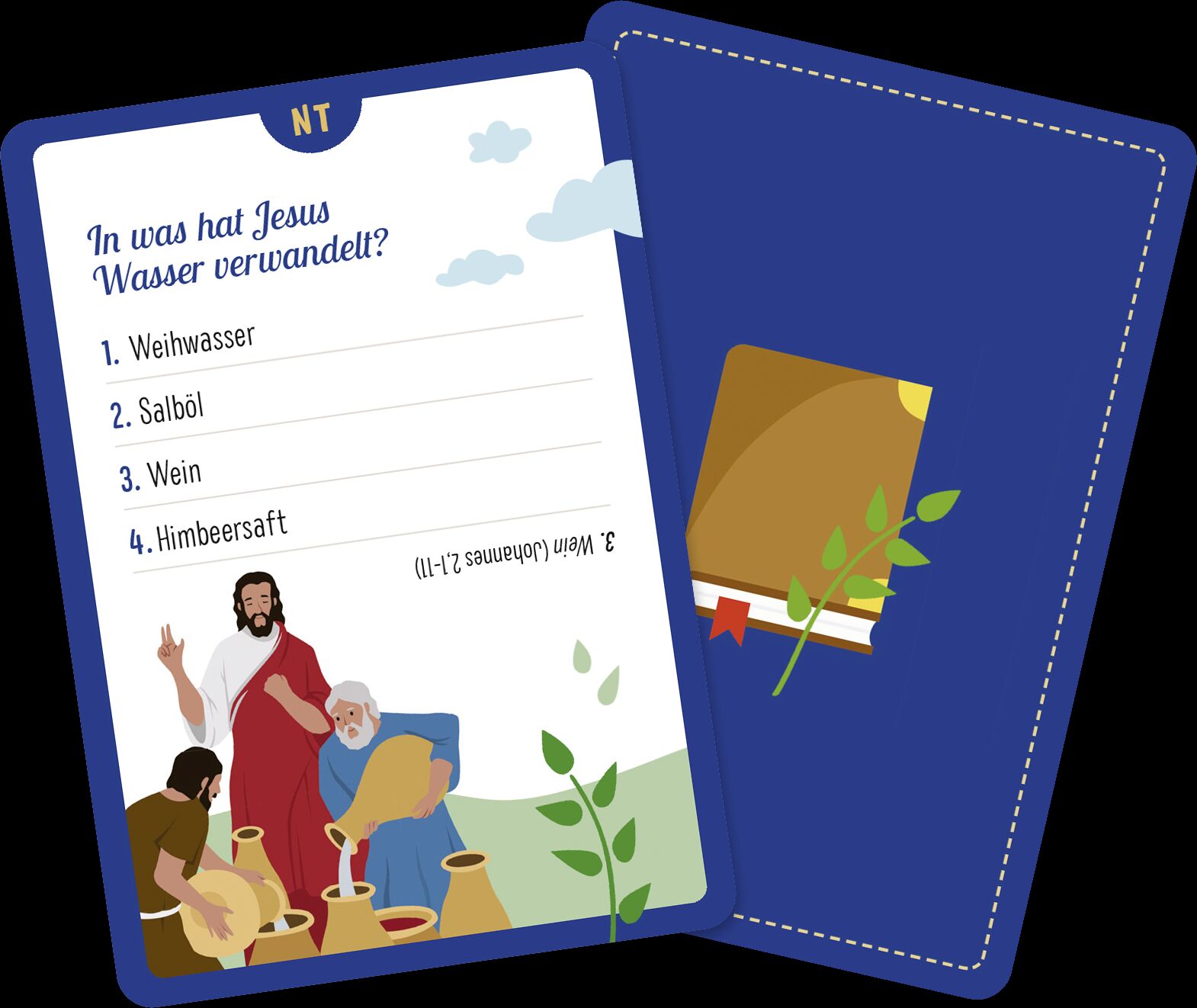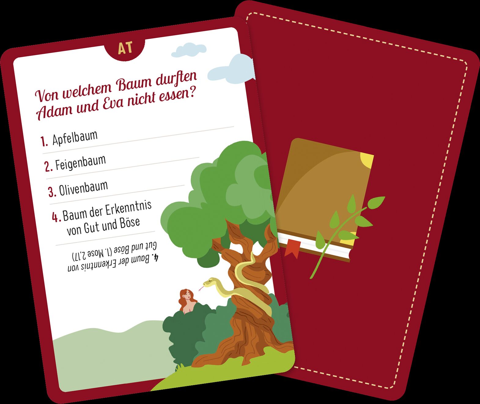 Die Bibel spielerisch entdecken: Unterhaltsames Bibelquiz für Kinder "In was hat Jesus Wasser verwandelt?" In Weihwasser, Salböl, Wein oder Himbeersaft? "Von welchem Baum durften Adam und Eva nicht essen?" Vom Apfelbaum, Feigenbaum, Oliven...
