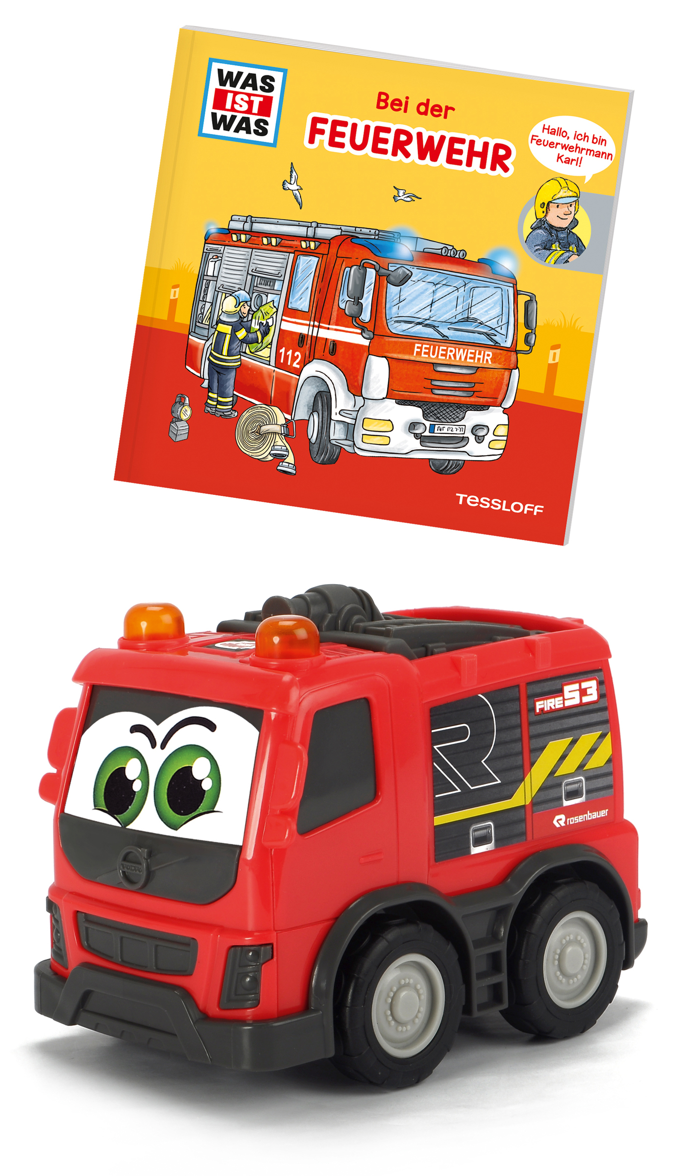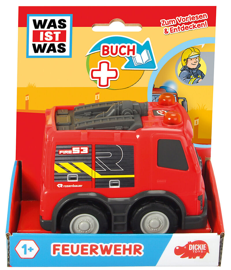 Ein robustes Feuerwehrfahrzeug für kleine Kinderhände wartet auf seinen Einsatz! Als Anregung zum Nachspielen dient das WAS IST WAS Buch im Miniformat, in dem der freundliche Feuerwehrmann Karl alles rund um die Feuerwehr erklärt. Die Kinder erleben den Alltag...