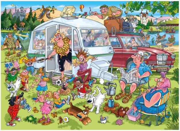 Puzzlemaße: 68 x 49 cm Inhalt: 1x Puzzle, 1x Lösungshinweis Erinnerungen an enge Wohnwagen, zerbrechliche Möbel und mürrische Omas, die im Regen Tee schlürfen, kommen hoch, wenn man an Campingausflüge denkt. Urlaub im Freien bedeutete den Geruch von verfaulten...