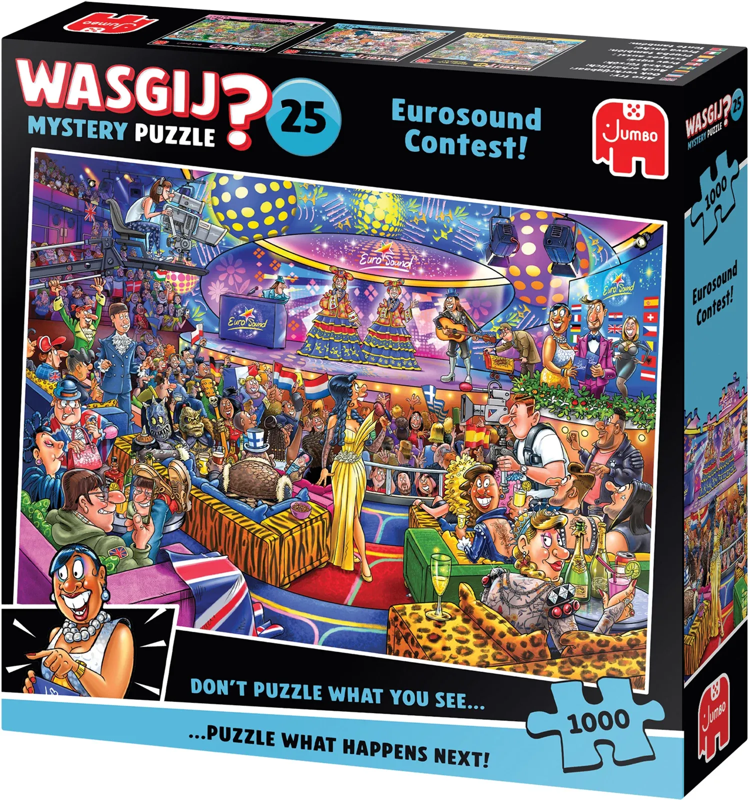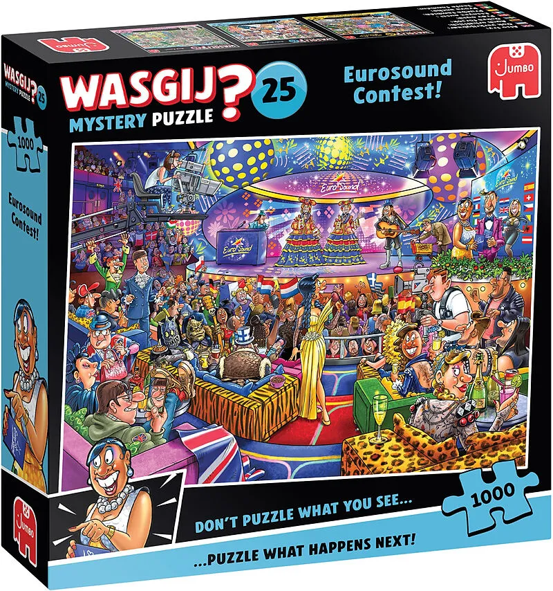 Wasgij Mystery ist ein Was passiert dann? - Puzzle. Mithilfe deiner Fantasie und der gelieferten Hinweise puzzelst du, was den auf der Schachtel dargestellten Figuren als nächstes geschehen wird.