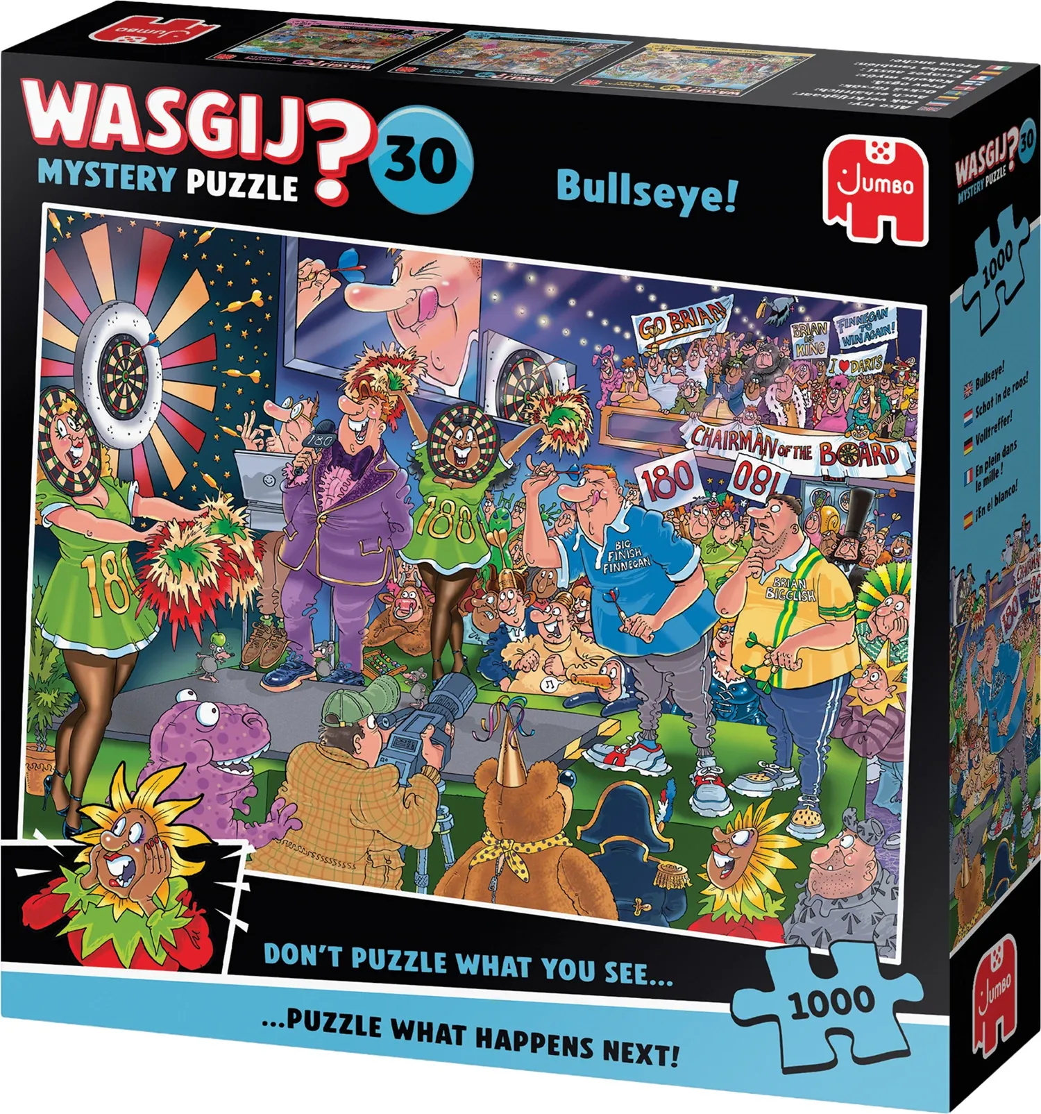 Wasgij Mystery ist ein Was passiert dann? - Puzzle. Mithilfe deiner Fantasie und der gelieferten Hinweise puzzelst du, was den auf der Schachtel dargestellten Figuren als nächstes geschehen wird.