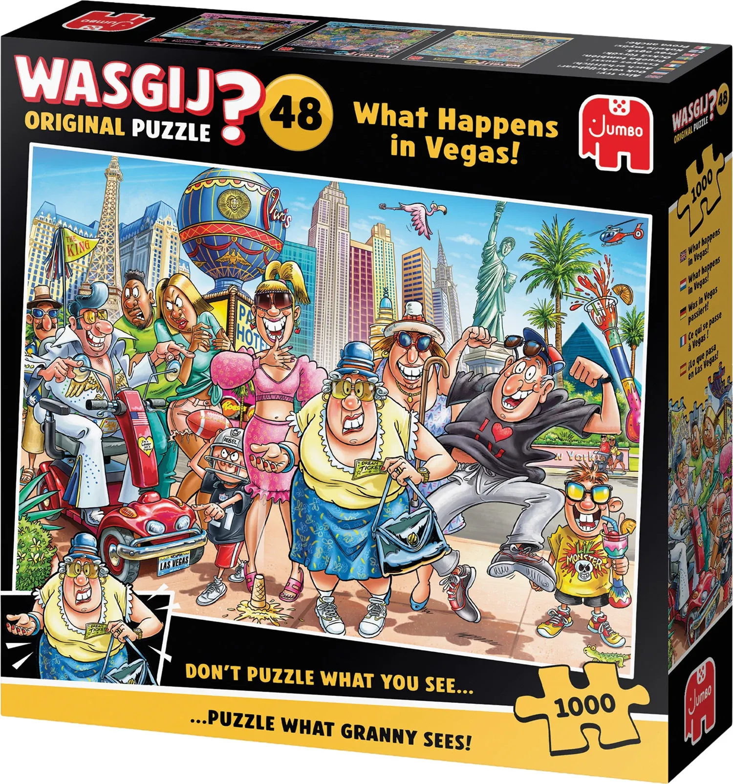 Wasgij Original ist ein ''Was siehst du?'' - Puzzle. Mithilfe deiner Fantasie und der gelieferten Hinweise puzzelst du, was die auf der Schachtel dargestellten Figuren gerade sehen.