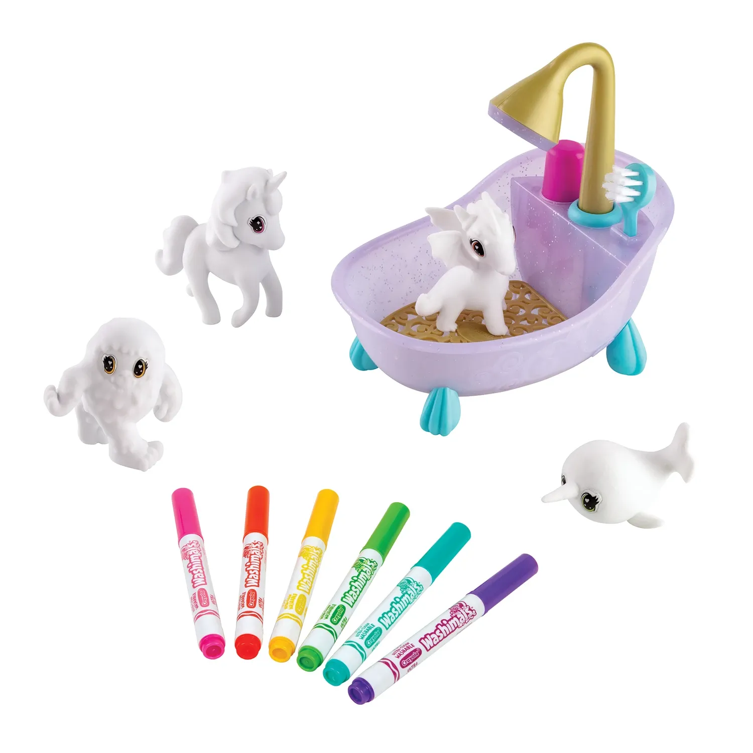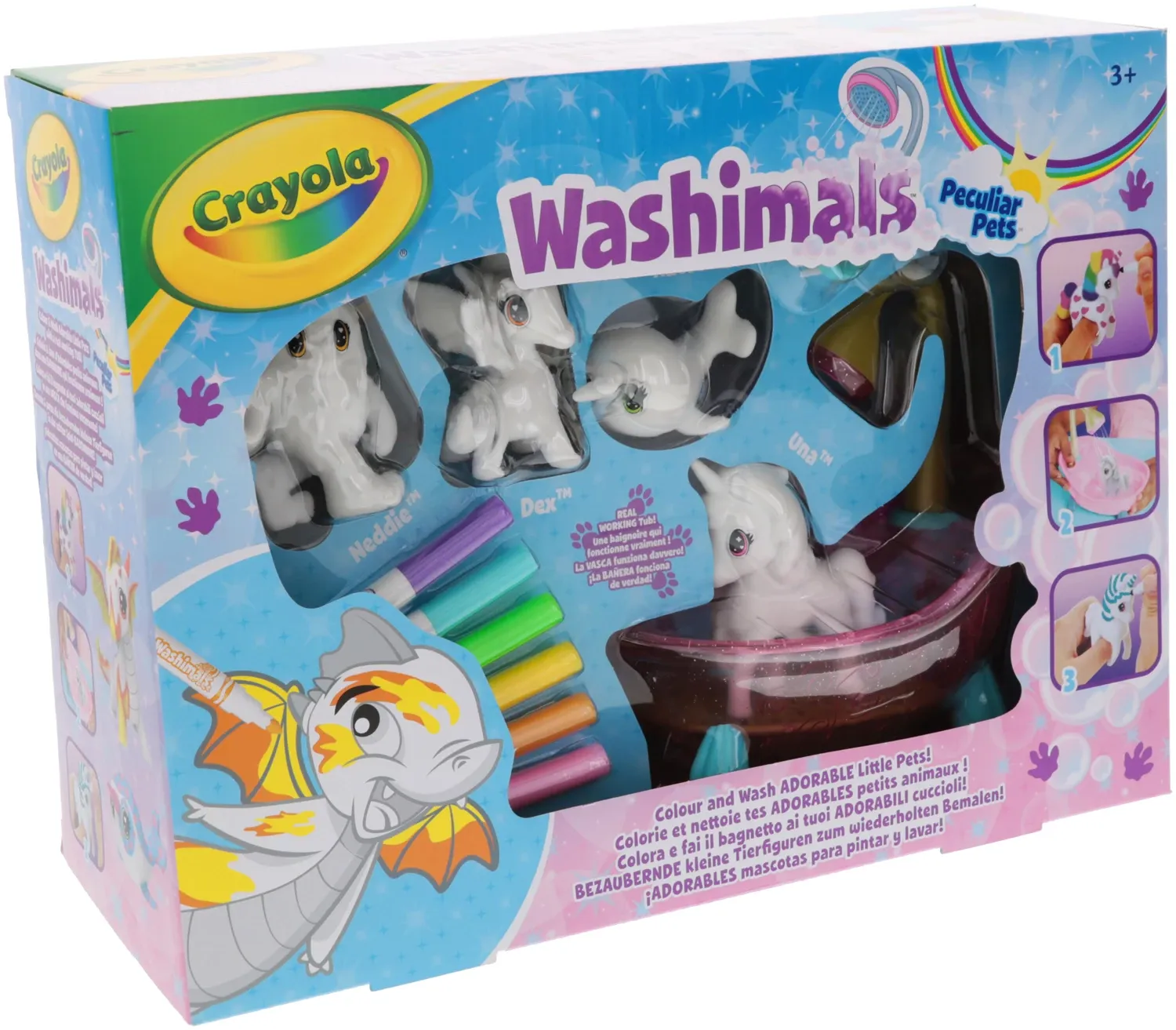 Mit diesem tollen Spielset, kannst du liebenswerte kleine, seltsame Kreaturen ausmalen und wenn du Lust auf ein neues Design hast, stellst du sie in ihre Badewanne und wäschst sie sauber. Inhalt: 4 beflockte Tierchen (Einhorn, Yeti, Narwal, Drache), 6 auswasch...