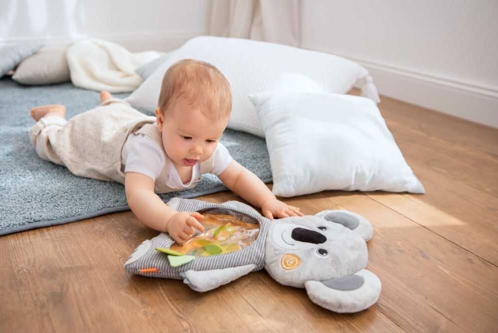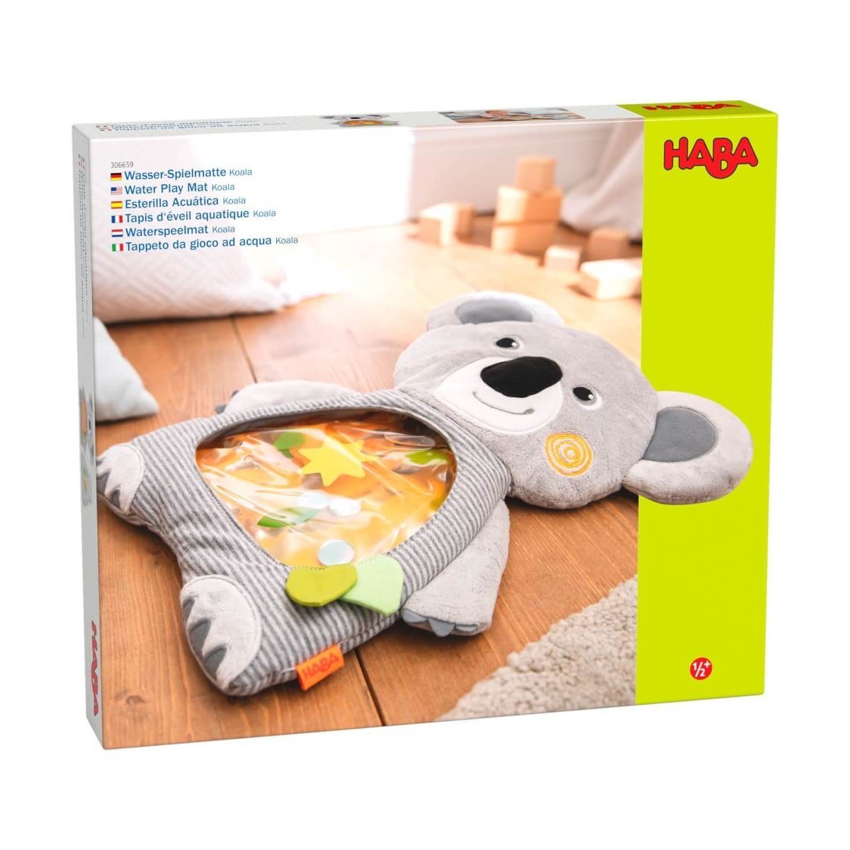 Dieser kuschelige Koala hat es in sich: Die HABA Wasserspielmatte für Babys ab 6 Monaten lässt sich mit Wasser füllen. Die Kleinen liegen in Bauchlage bequem auf der Spielmatte aus Stoff. Durch ein großes Sichtfenster beobachten sie farbenfrohe Spielelemente. ...