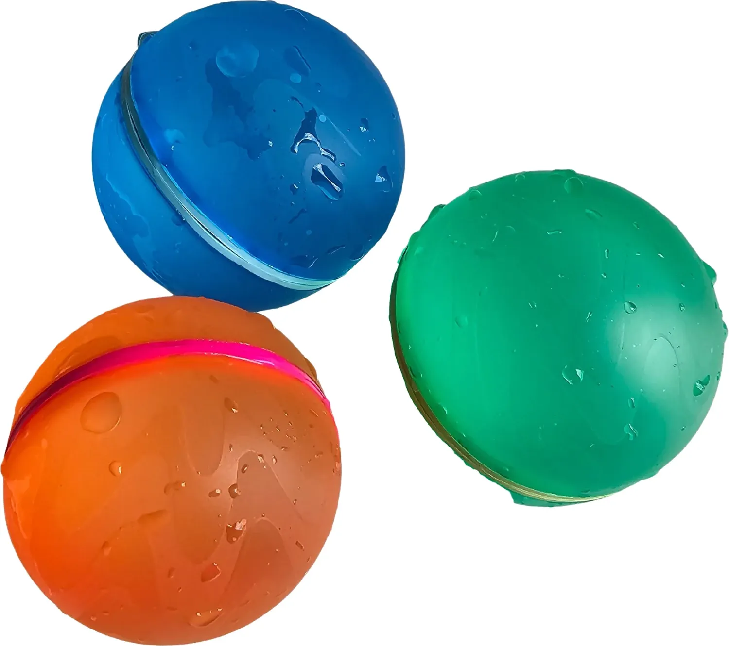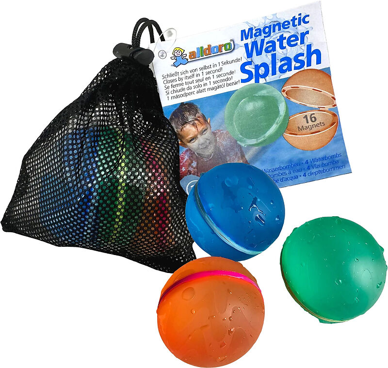 Die Water Splash Wasserbomben bestehen aus flexiblem, strapazierfähigem Silikon. Durch den Magnetverschluss, bestehend aus 16 Magneten je Ballon, gestaltet sich das Befüllen kinderleicht. Die Wasserbomben sind wiederverwendbar.