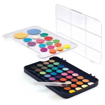 ab 6 Jahren Eine äusserst umfassende Auswahl an Gouache-Farben für eine tolle Harmonie der über zwei Ebenen verteilten Farbnuancen: 36 Standardfarben, 8 Perlfarben und 9 Neontöne. Die obere Platte sowie die Mischpalette sind abtrennbar. Das gewisse Extra: Das ...