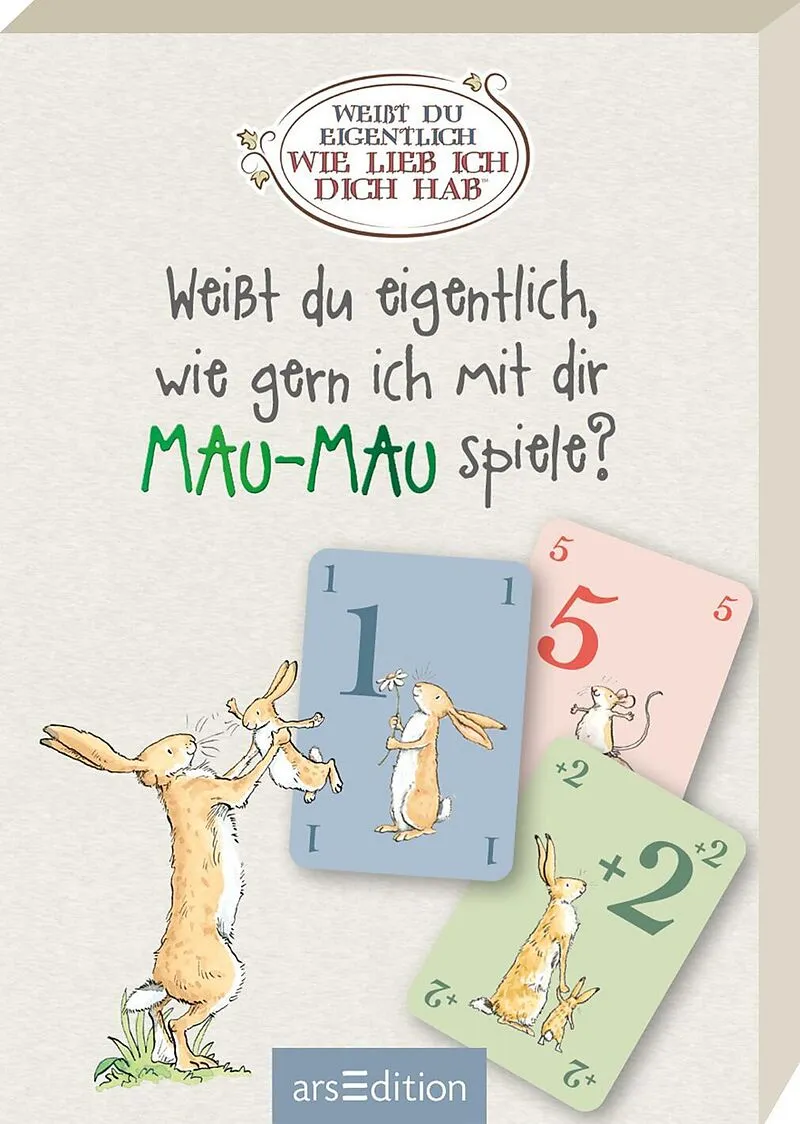 Großer Spielspaß mit den beliebten Hasen-Illustrationen Tauche ein in die zauberhafte Welt der niedlichen Hasen aus dem Kinderbuchklassiker "Weißt du eigentlich, wie lieb ich dich hab?"! Dieses Mau-Mau-Kartenspiel begeistert mit liebevollen Illustra...