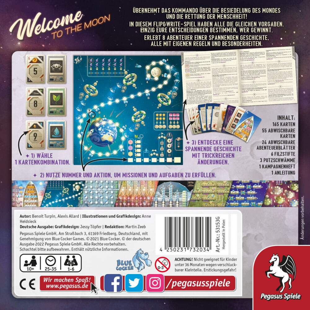 "Bewohnerinnen und Bewohner der Erde, die Stunde schlägt: Unser Planet ist dem Untergang geweiht! Das Schicksal der Menschheit liegt in euren Händen ..." InWelcome to the Moonmachen sich die Spielenden auf, um auf dem Mond eine neue Heimat für die Er...