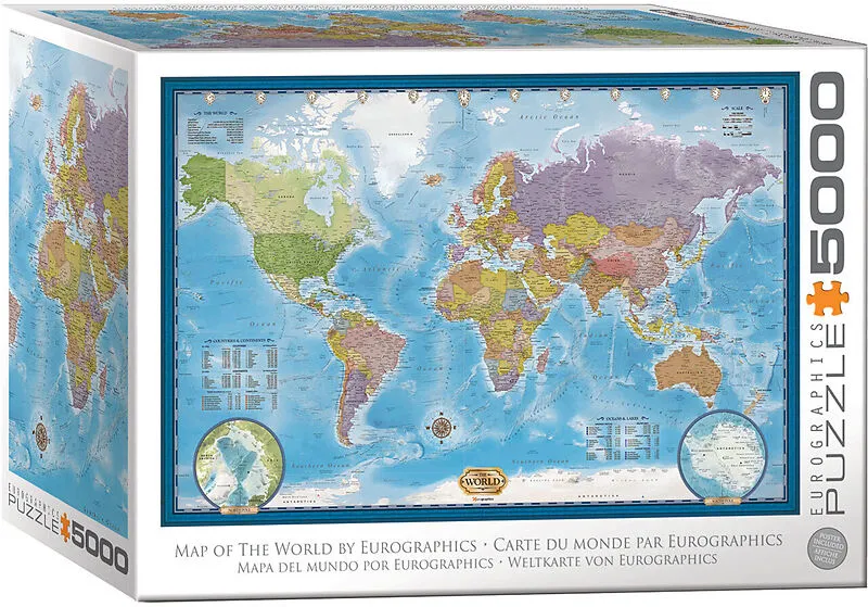 Puzzlemaße: 152,5 x 101,5 cm Inkl. Poster Eine wunderschön gestaltete Weltkarte mit umfassenden Daten zu Bevölkerung und Fläche sowie politischen und geologischen Merkmalen. Neu! Die große Puzzle-Sammlung. 5000 Teile, übergroßes Puzzle. Starke, hochwertige Puz...