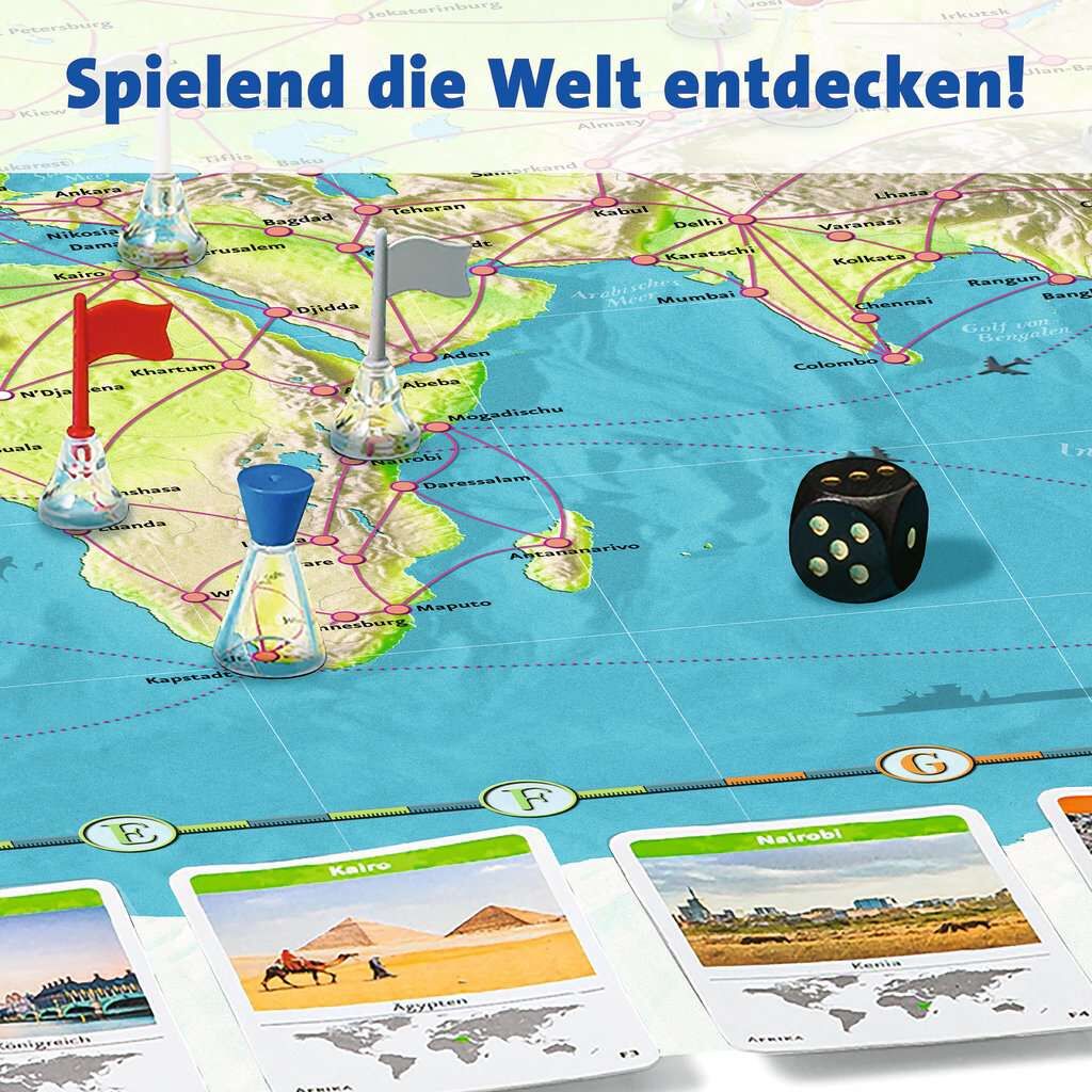 Im Familienspiel #Weltreise# besuchen die Spieler die interessantesten Orte der Welt. Zufällig verteilte Städtekarten bestimmen jede Partie eine neue, für jeden Spieler unterschiedliche Reiseroute. Von Tokio über London nach New York # oder von Rio de Janeiro ...