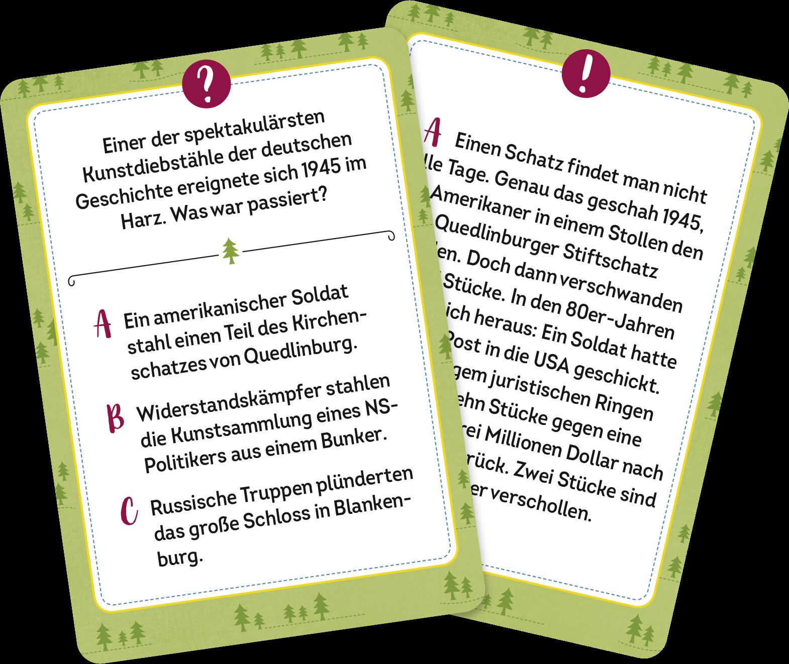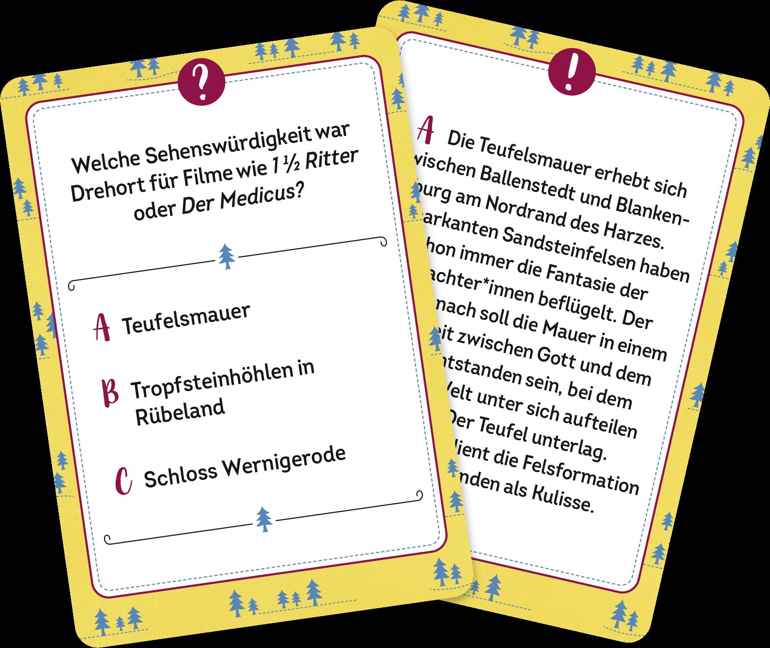 Unterhaltsames Wissensquiz im handlichen Kartenformat Kennen Sie das "Brockengespenst"? Oder wissen Sie, gegen wen oder was die Harzschützen ihre Heimat verteidigen wollten? Dieses Quiz für Kinder und Erwachsene ist eine unterhaltsame Wissensreise d...