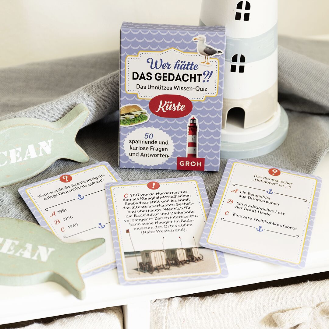 Lustiges Quiz-Kartenspiel mit unnützem Wissen über Nordsee- und Ostsee-Küste Das Fragespiel im praktischen Spielkartenformat enthält 50 Fragen zu spannenden, kuriosen und lustigen Fakten von Borkum bis Rügen. Und auf den Rückseiten der Karten findet sich nebe...