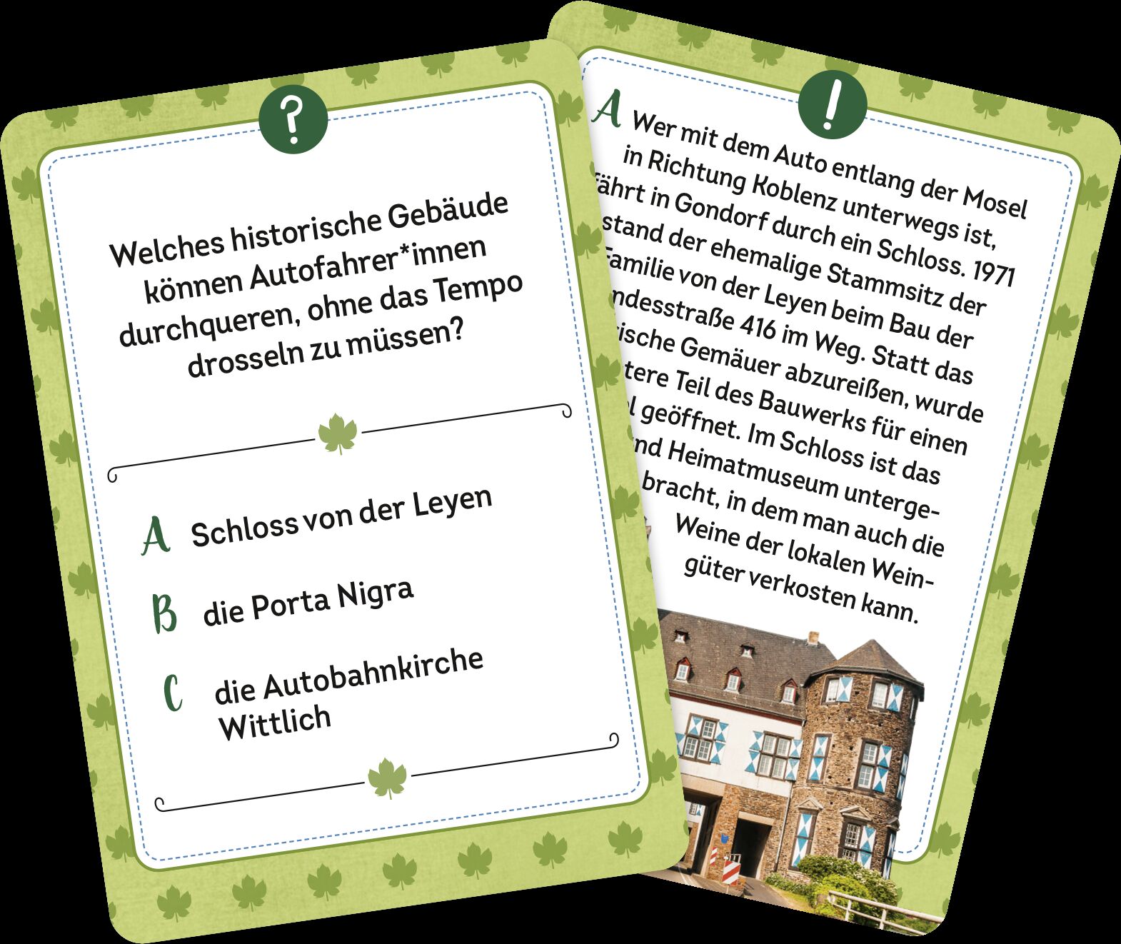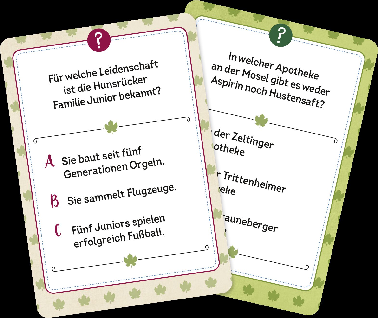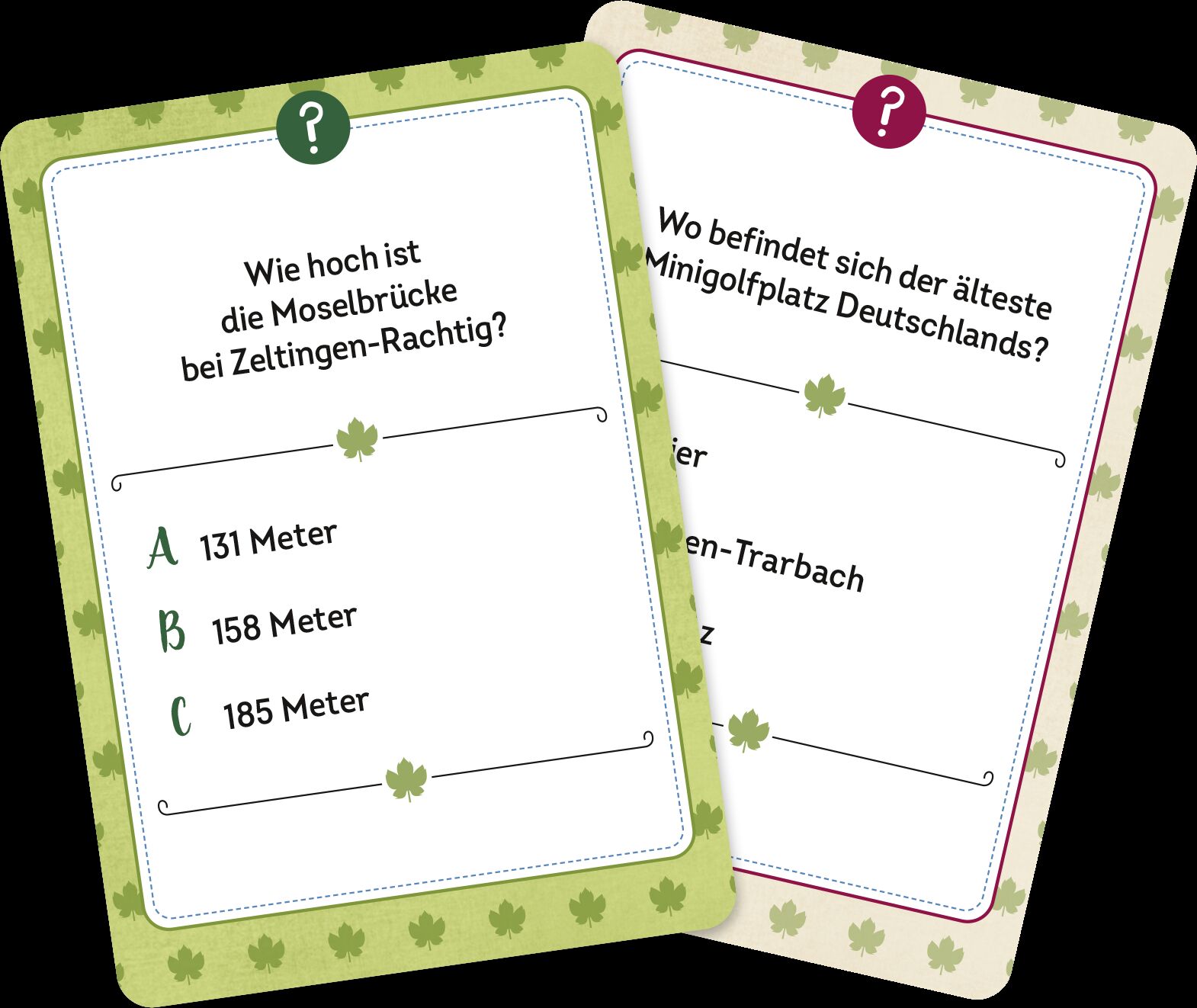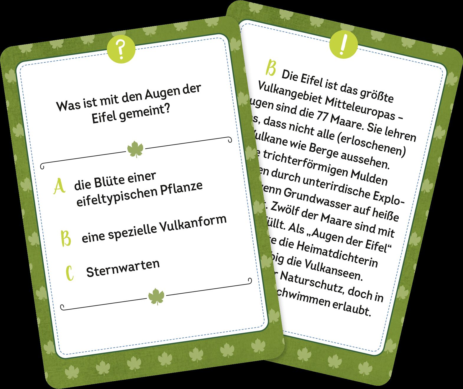 Unterhaltsames Wissensquiz im handlichen Kartenformat Welchem Moselwein werden "Heilkräfte" zugeschrieben? Was wird serviert, wenn man Flieten bestellt? Und was ist mit den "Augen der Eifel" gemeint? Dieses Quiz für Kinder und Erwachsene i...