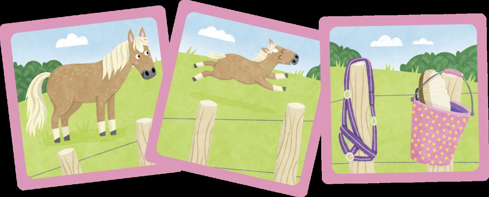 Tierisches Bauernhof-Memory mit Trios statt Bild-Paaren - für Kinder ab 5 Jahren Spielen und Lernen zugleich: Das Tier-Memo bietet Spielspaß, regt zum Knobeln an und macht Lust auf Ferien auf dem Bauernhof. Wozu gehören noch mal Fohlen und Putzzeug? Richtig, ...
