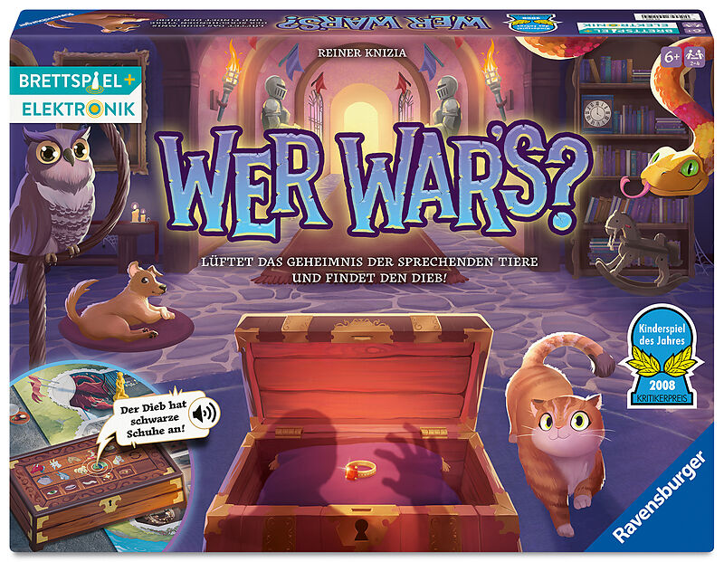 Ravensburger Kinderspiel 23494 - Wer war's? Gesellschafts- und Familienspiel, für Kinder und Erwachsene, Kinderspiel d In diesem Brettspiel mit Elektronik möchten die Kinder den Dieb des Zauberrings herausfinden, um das Königreich zu retten. Dafür müssen sie g...30 Kunden haben diesen Artikel kürzlich gekauft.