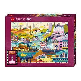Movie Masters. Wes Andersons einzigartige Bildsprache klingt auch in diesem Puzzlemotiv an. So kann man stilvoll alle wichtigen Characters und Orte aus seinen Filmen suchen.