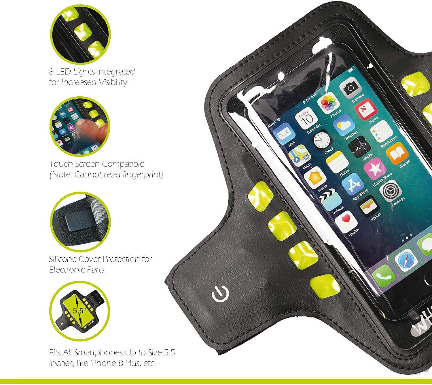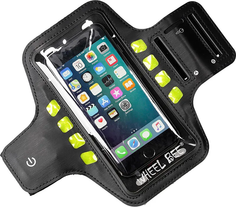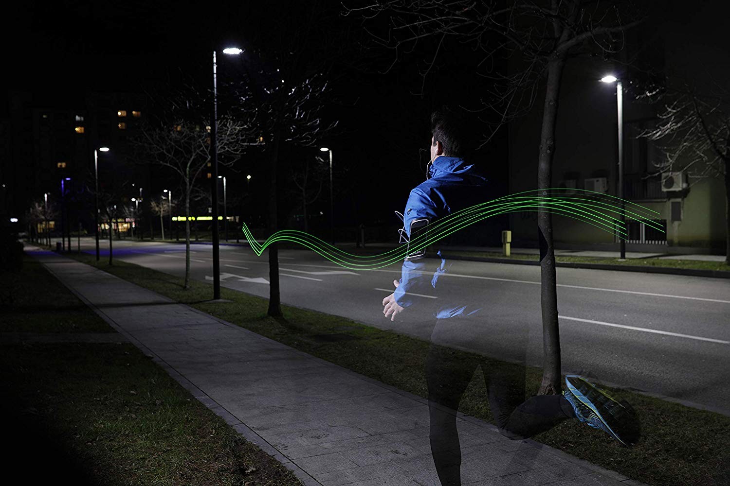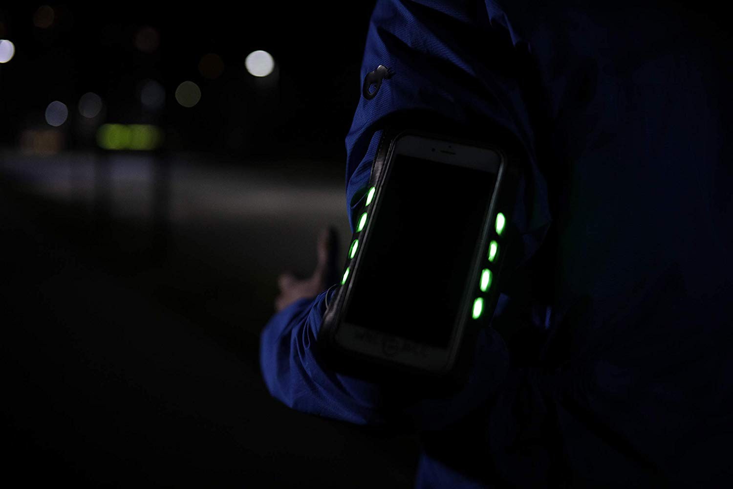 Absolut innovatives Sport-Armband für Handy und Schlüssel mit integrierter LED Technik für bestmögliche Sichtbarkeit und damit Sicherheit bei Dämmerung und Dunkelheit. Insgesamt 8 hellgrüne LEDs brennen andauernd, blinken schnell oder langsam. Autofahrer erken...