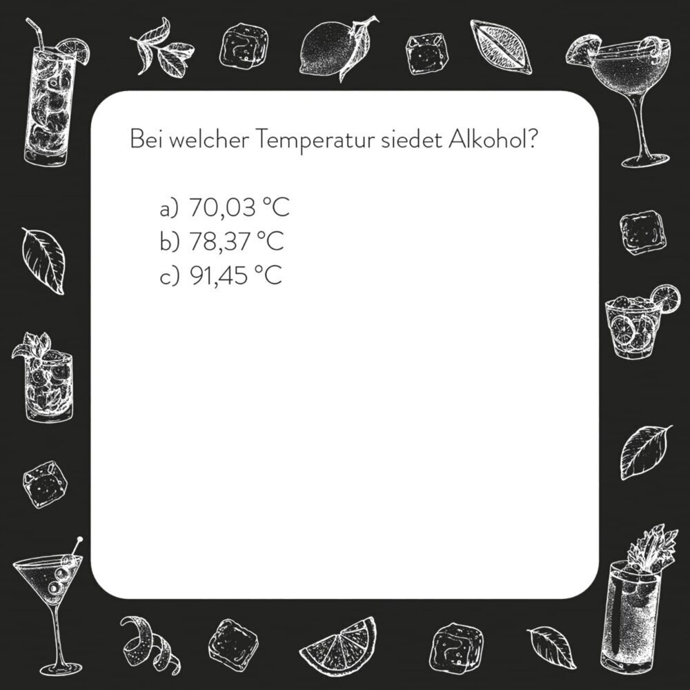 Das Promille-Quiz rund um Cocktails, Drinks, Schnäpse & Co. DAS Quizspiel für die nächste Cocktailparty, das Whisky-Tasting mit Freunden und für alle Erwachsenen, die nach dem Essen gerne einen Digestif trinken. Von Cachaça bis Krabbeldiwandnuff Spirituos...