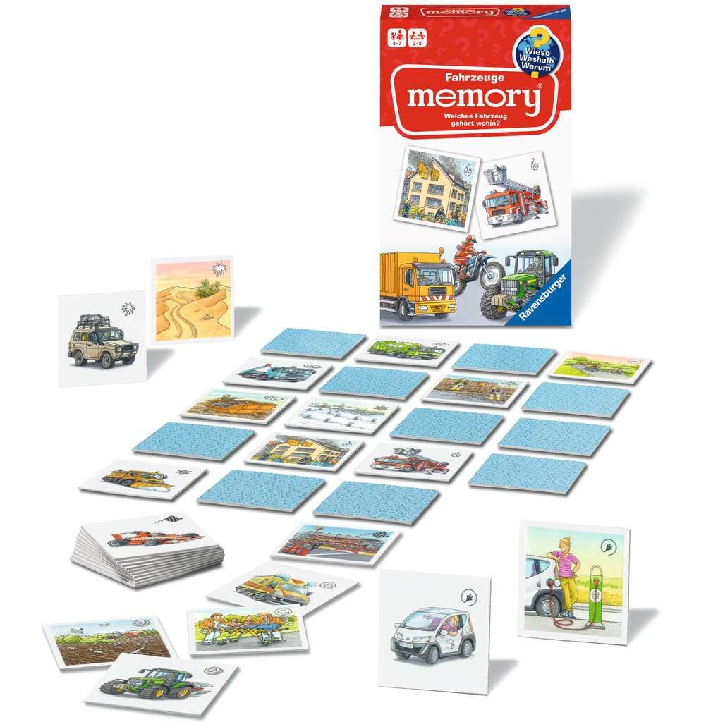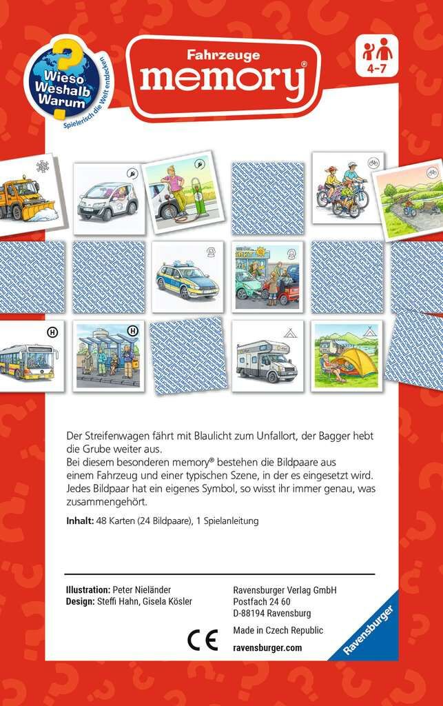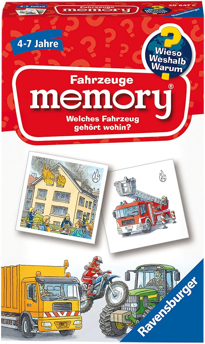 Wieso Weshalb Warum Fahrzeuge memory® mit unterschiedlichen Bildpaaren: Anders als beim bekannten memory, bei dem identische Bilder gesucht werden, geht es hier um Fahrzeuge und den Ort, in dem sie eingesetzt werden. Der Traktor möchte das Feld umpflügen, ein ...