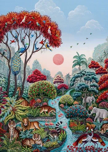 Wie es sich für ein ordentliches Paradies gehört, leben in Maria Amalia Bartolinis exotischem Garden auf 2000 Teilen alle Tiere in schönster Harmonie zusammen! Gelegte Größe: 68,8x96,6 cm.