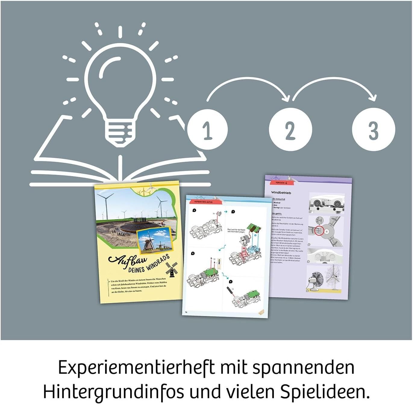 Entdecke Erneuerbare Energien - Aus Wind wird Strom! Ein 90 Zentimeter hohes, im Erdboden verankertes Windrad zeigt Kindern zwischen 8 und 14 Jahren, wie klimafreundliche Energieumwandlung funktioniert. - Mit dem Outdoor-Set gewinnen sie Energie und können auc...