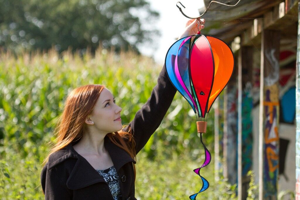 Dieser Hot Air Balloon Twist: "Rainbow" dreht sich bereits bei der geringsten Brise. Er bringt Farbe in Haus und Garten sowie auf Terrasse oder Balkon. Ohne weitere Montage plazierbar.