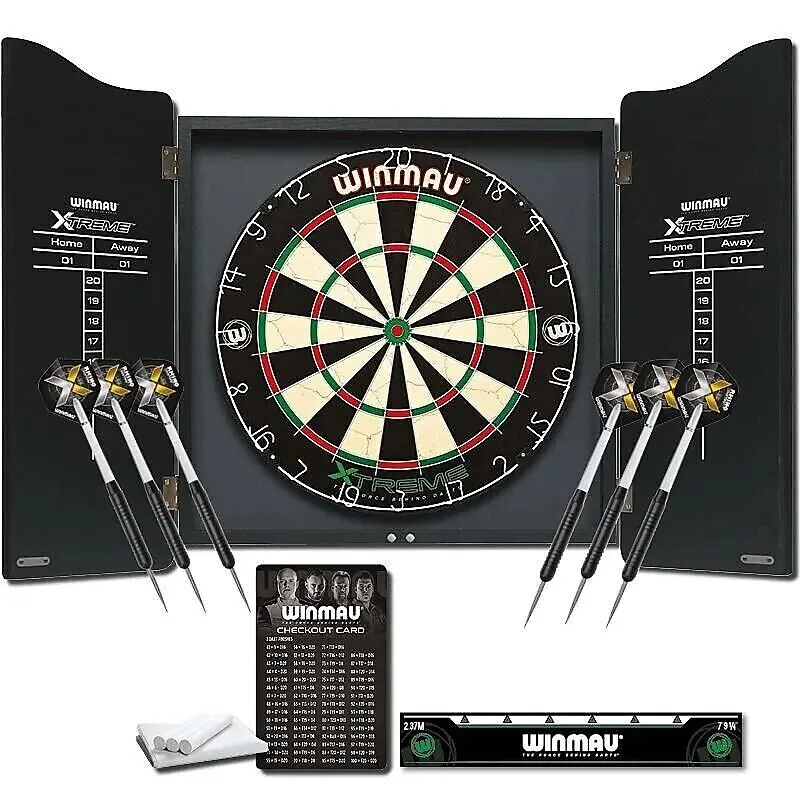 Das perfekte Darts Komplettset aus dem Hause Winmau mit allem, was man zum Spielen braucht! Das hochwertige, schwarze Holzkabinet ist der ideale Ort für das Winmau Dartboard XTREME. Wie alle Dartboards vom Weltmarktführer Winmau, bietet auch dieses Dartboard h...