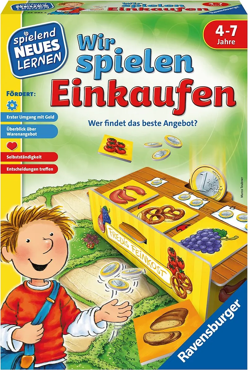 Bei dem Kinderspiel "Wir spielen einkaufen" stellen sich Fragen wie: Was kosten die Birnen an Ollis Obststand Oder reicht das Geld noch für Tomaten Wer geschickt einkauft, ist als Erster wieder mit einer vollen Tasche zu Hause. In diesem Lernspiel üben die Kin...